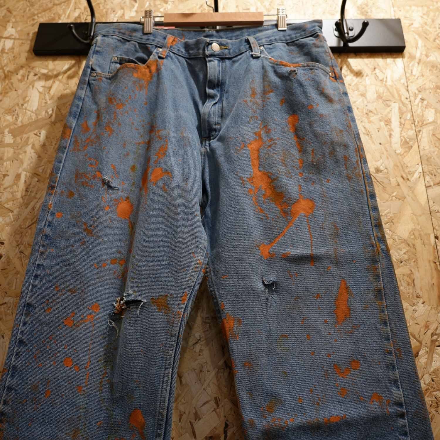 Wrangler ペンキ飛び デニムパンツ W36×L30 ラングラー 雰囲気系 ボロ ワークパンツ 古着【furugi-1797】