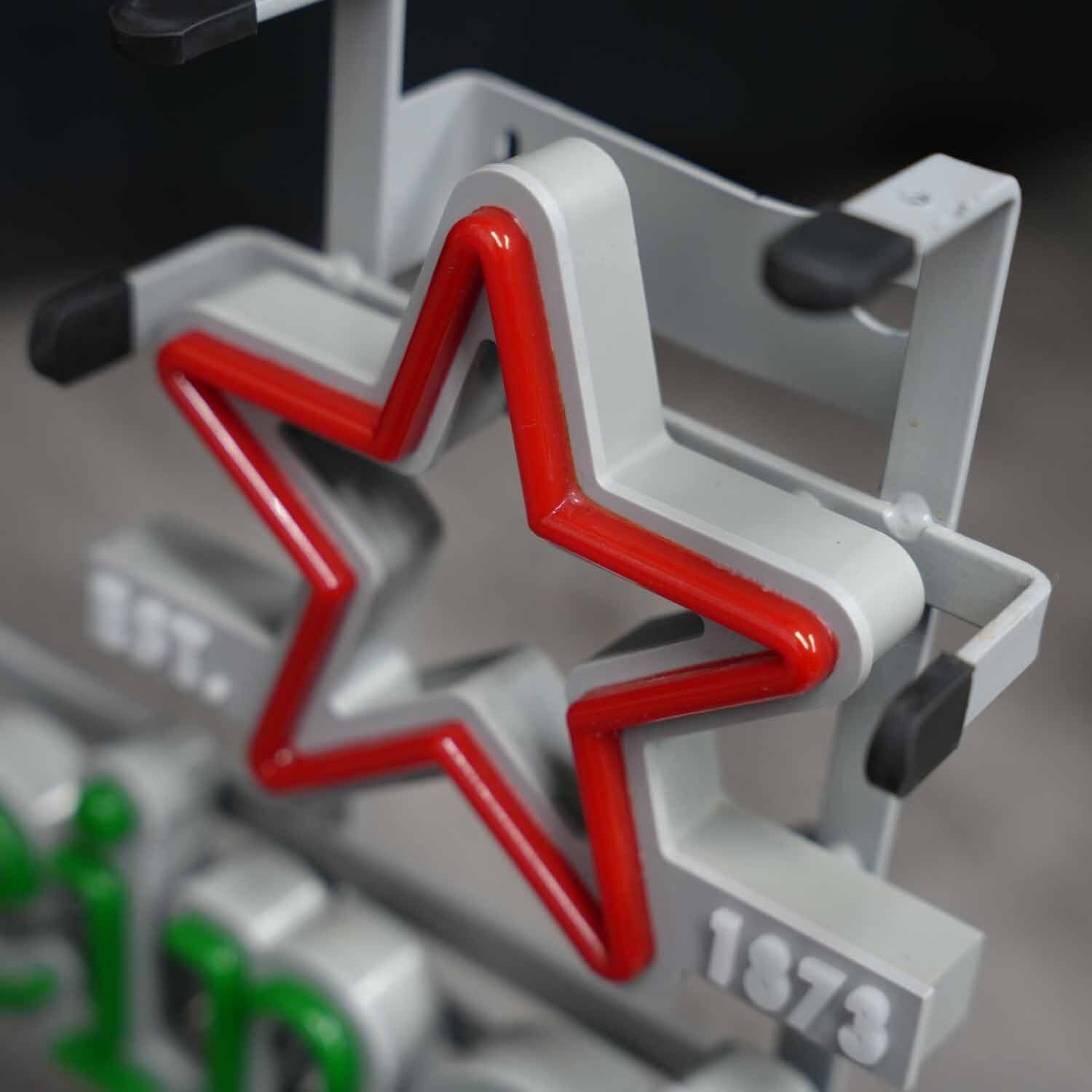 Heinekenは1873年にオランダ・アムステルダムで創業。星のモチーフは創業当初から続くブランドシンボルであり、本作でも上部に赤いネオンスターと「EST. 1873」の表記を配置。モダンなSILVERロゴでありながら、しっかりとブランドのルーツを感じさせるデザインに仕上がっています。
