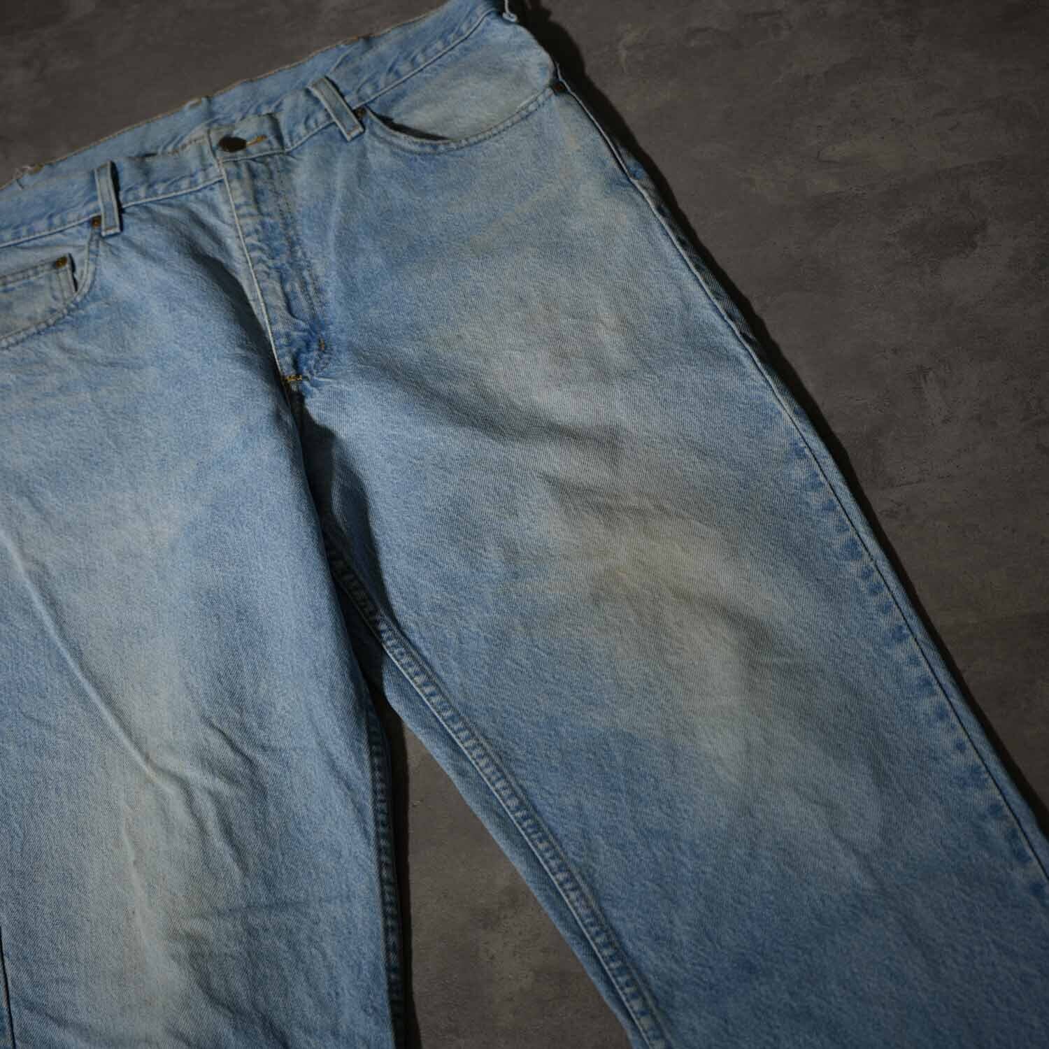 W35相当 90s-00s Carhartt カーハート デニムパンツ USAワーク ライトブルーフェード テーパード スケーター ストリート 古着【furugi-1833】