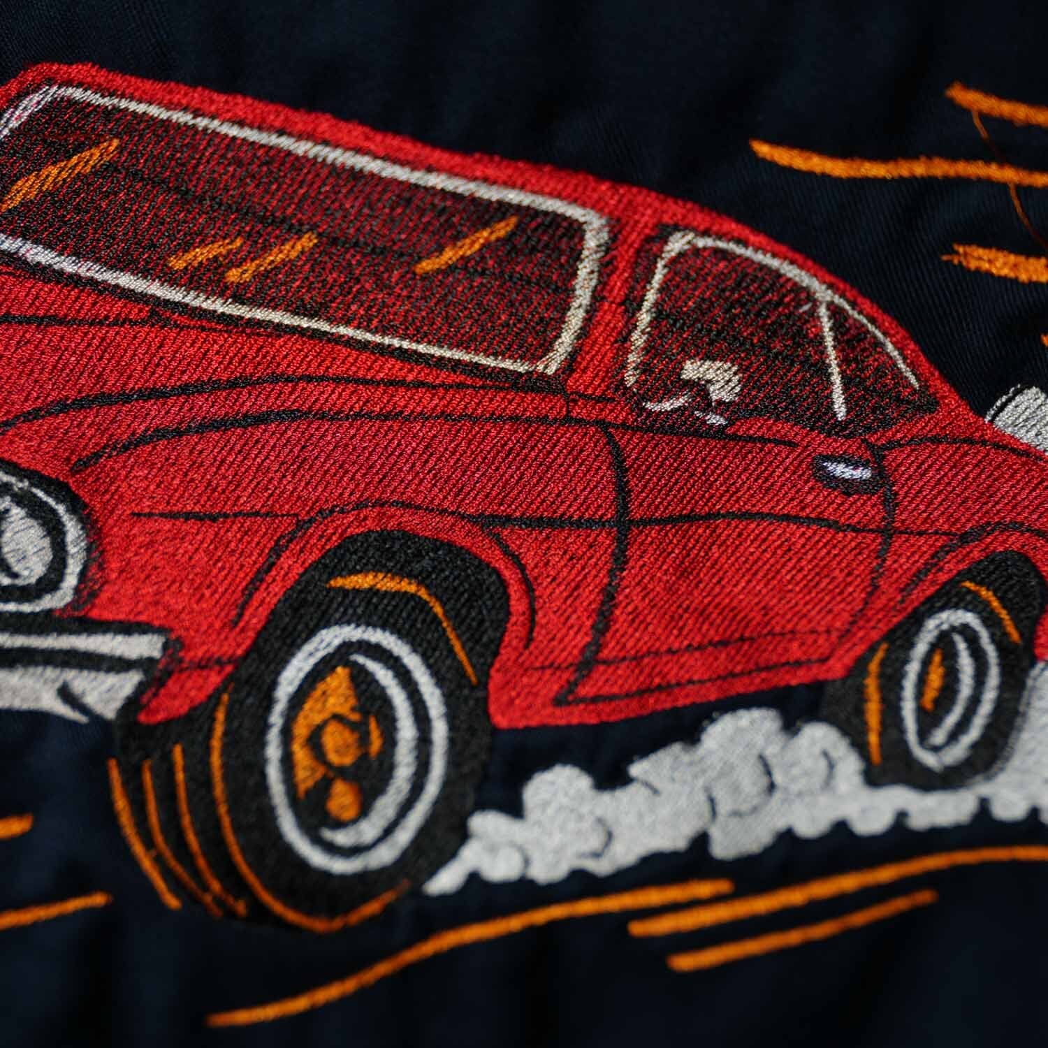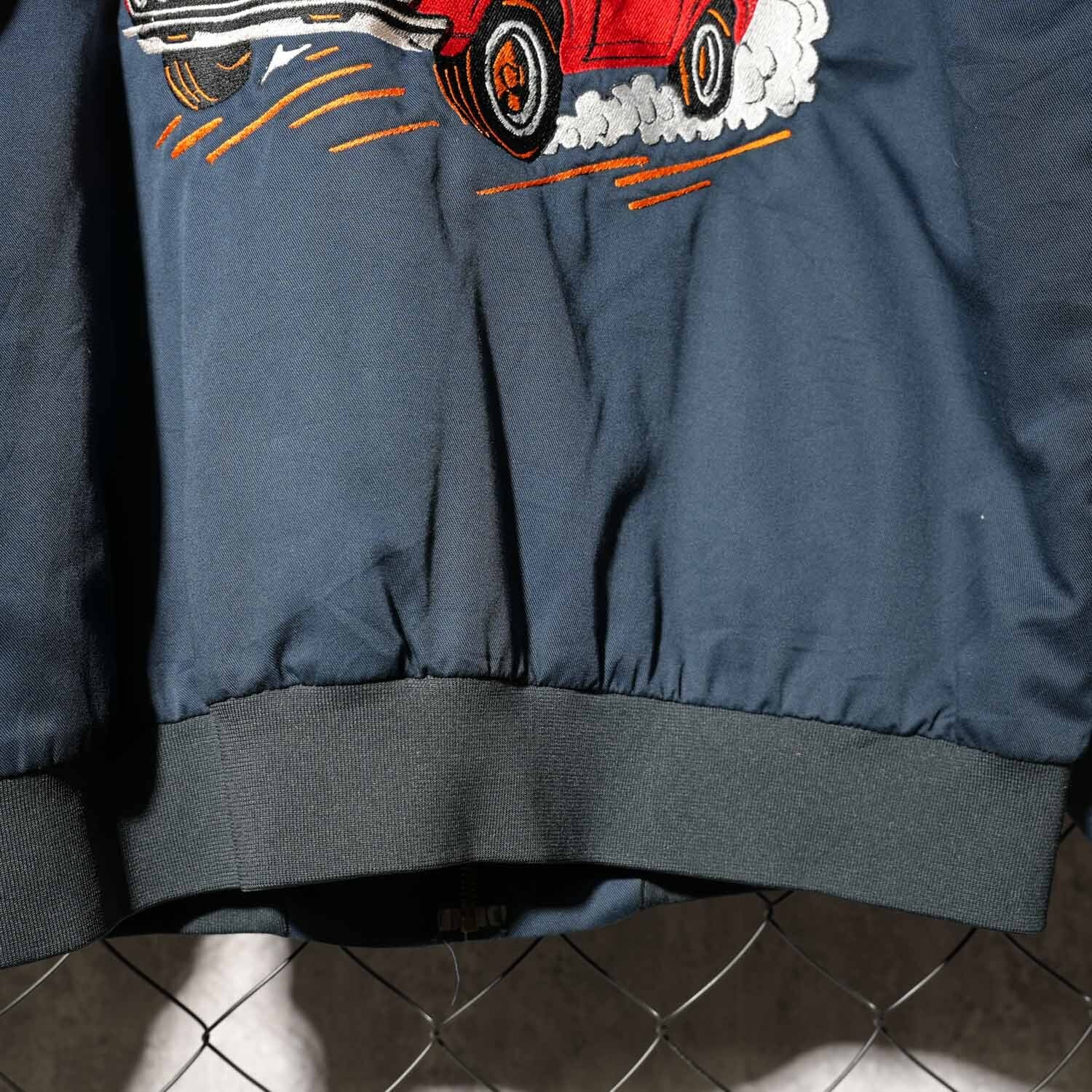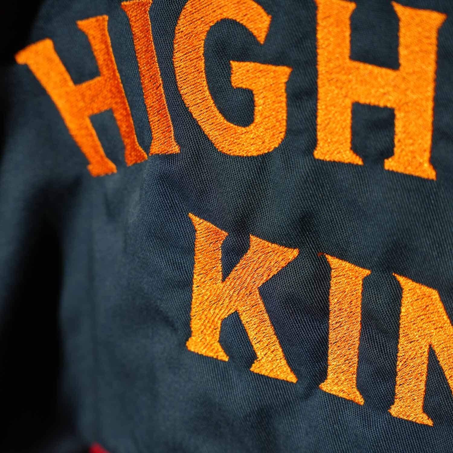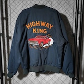 背面いっぱいに施された「HIGHWAY KING」とマッスルカーのビッグモチーフ刺繍が圧倒的な存在感を放ち、アメカジファン垂涎の一着です。