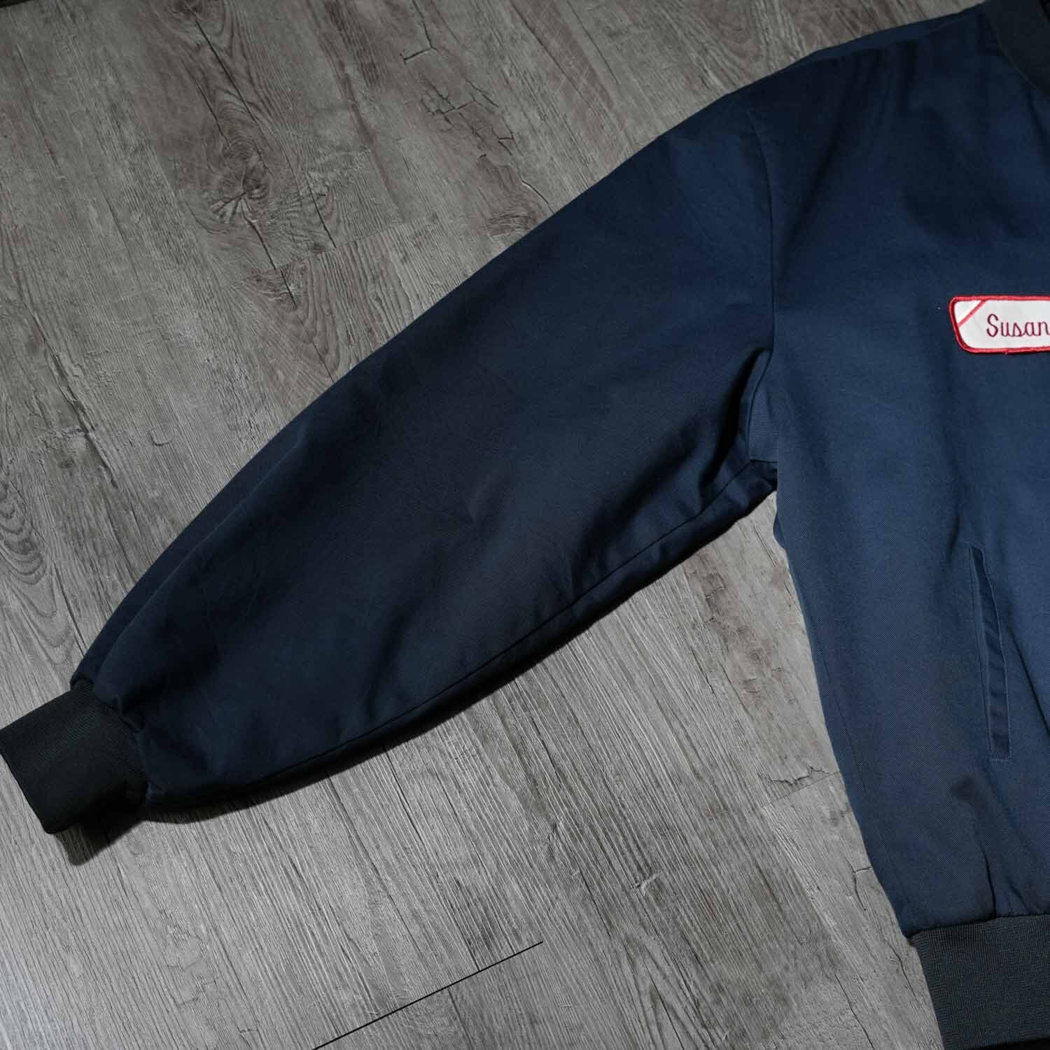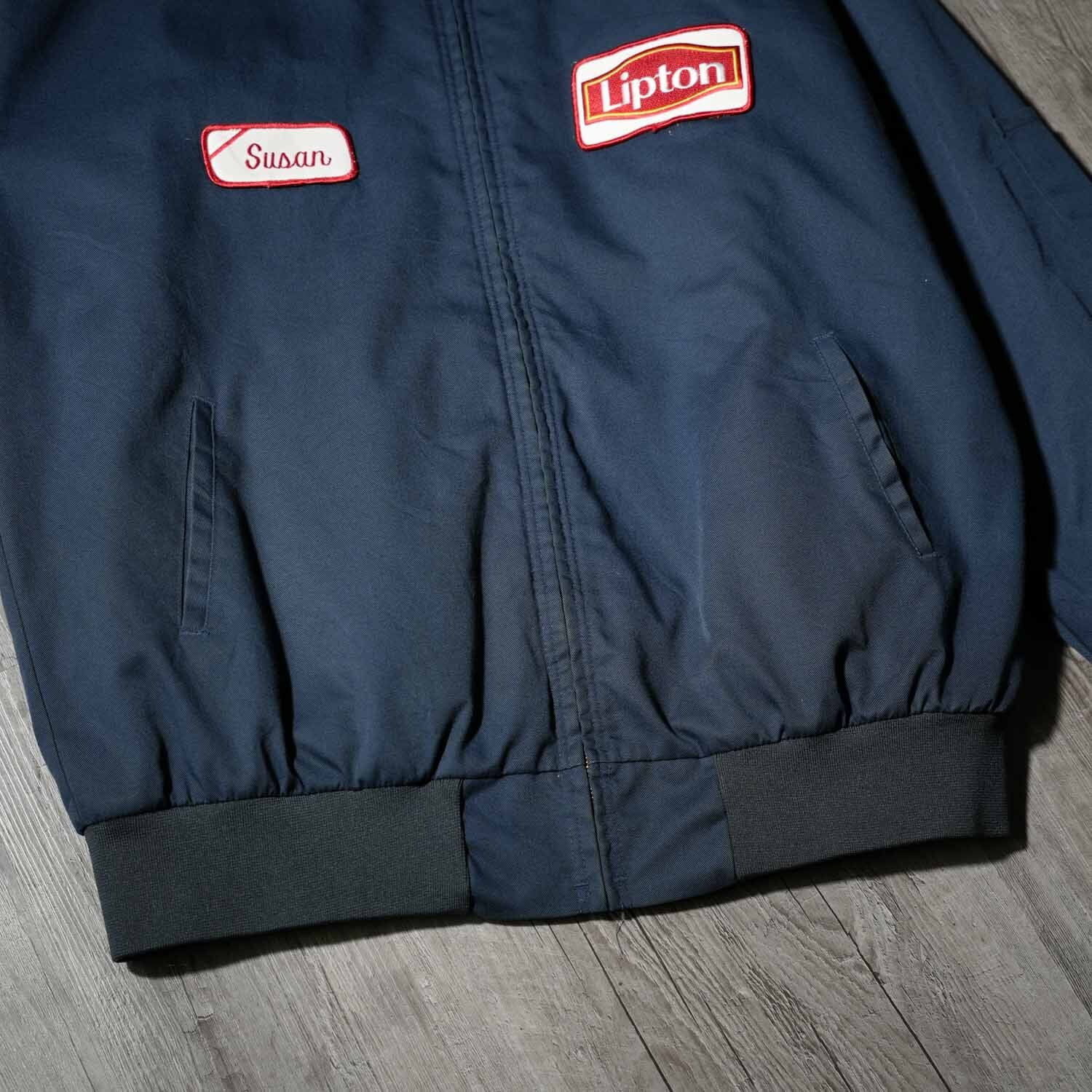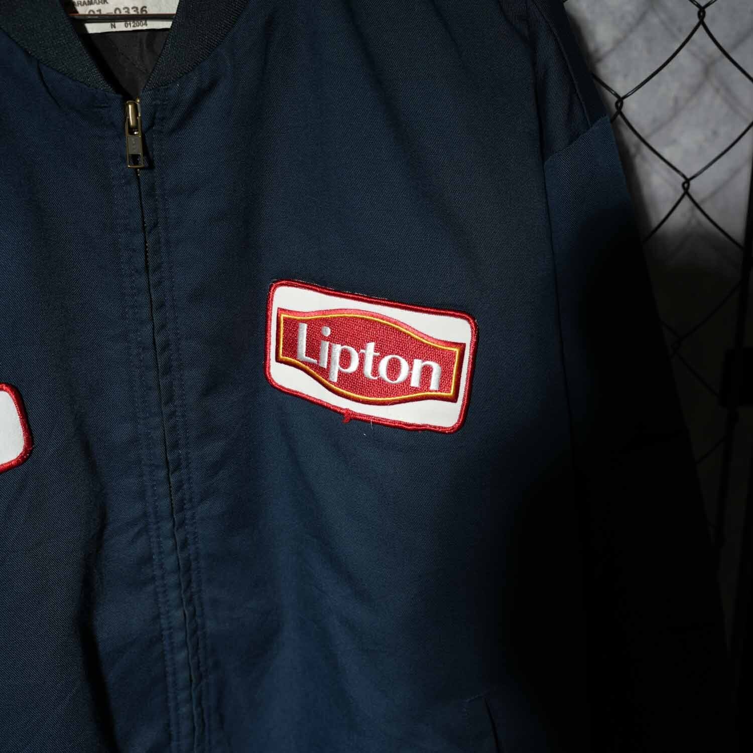 RED CAP レッドキャップ 刺繍 ワークジャケット ネイビー XLサイズ キルティングライナー HIGHWAY KING 車 アメ車 モーターサイクル Lipton ワッペン MA-1型 ヴィンテージ コットンポリエステル 企業ロゴ アメカジ 刺繍ブルゾン スーベニアジャケット スカジャン風 古着【furugi-1918】
