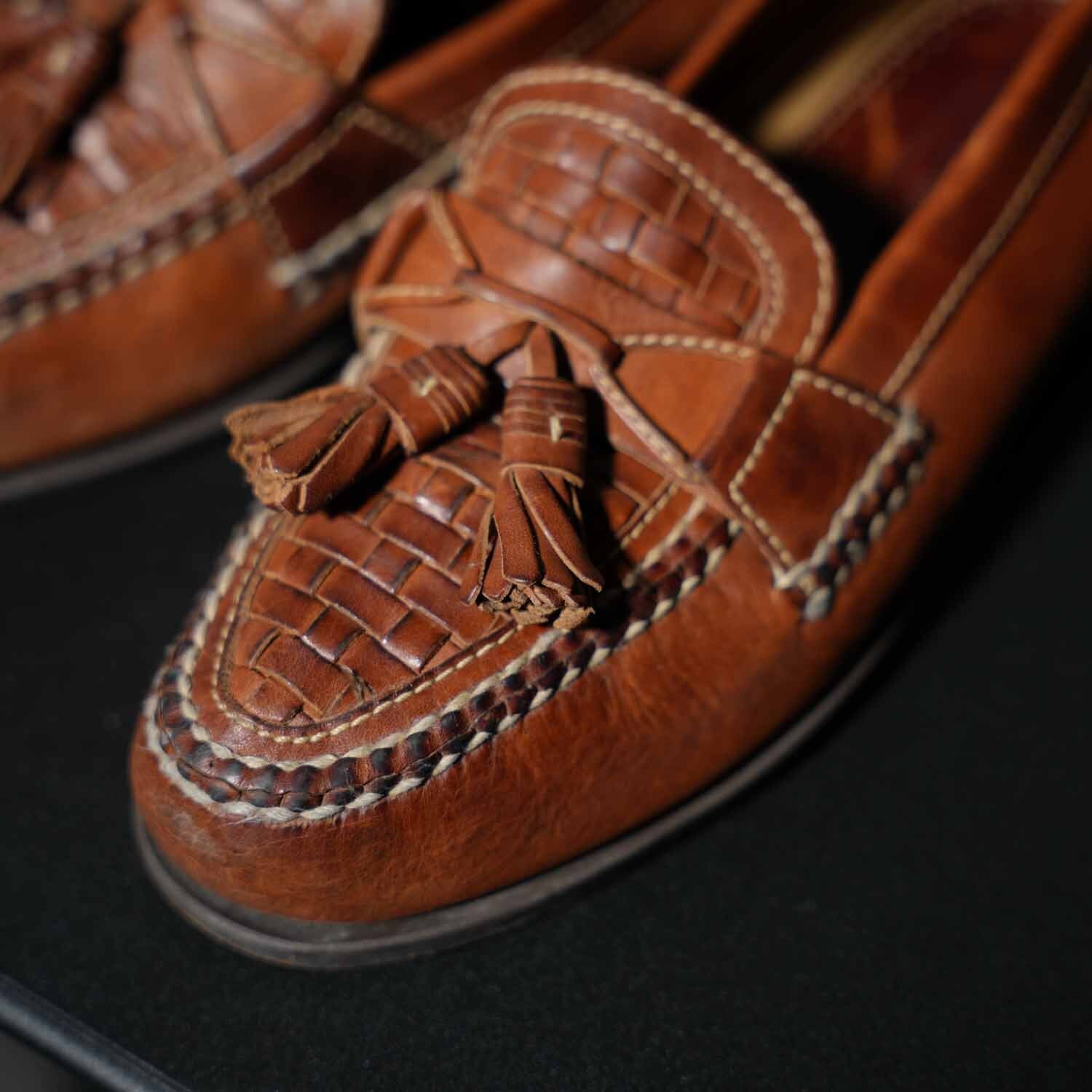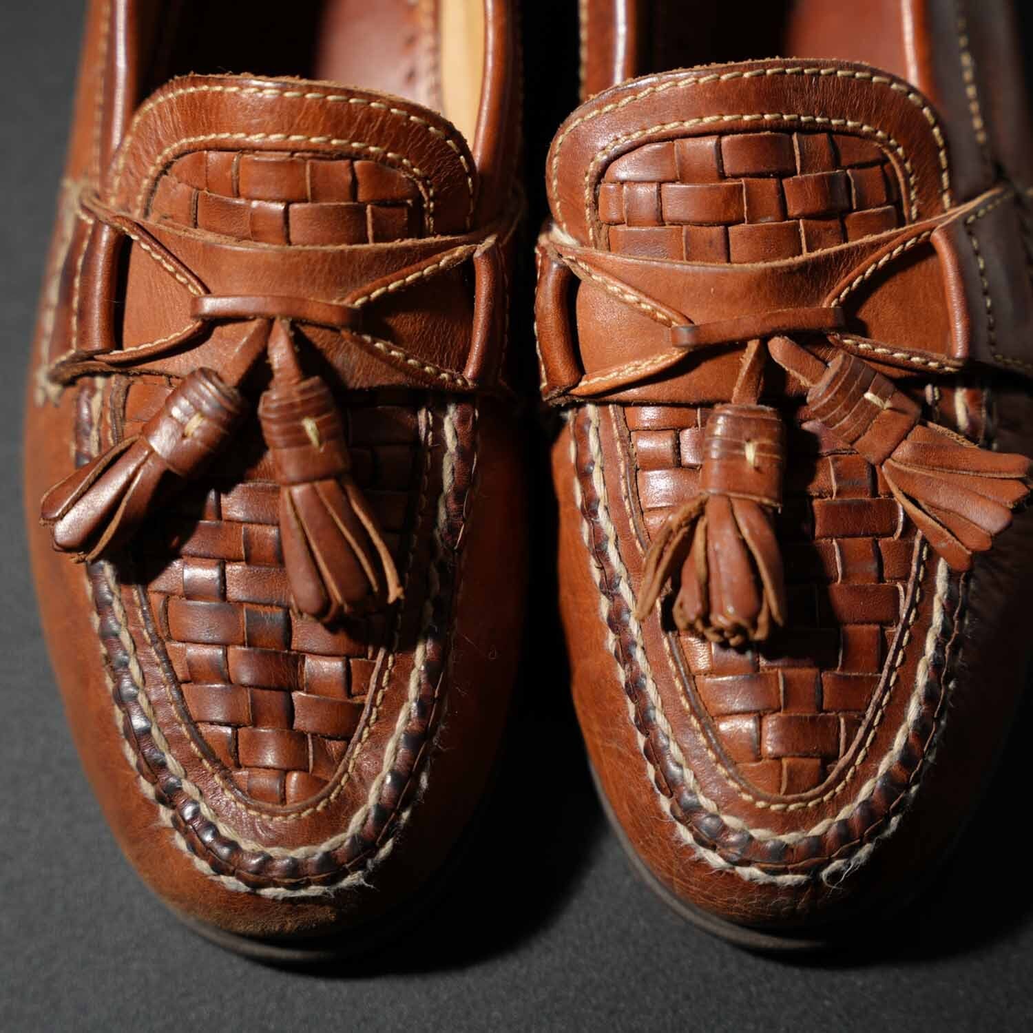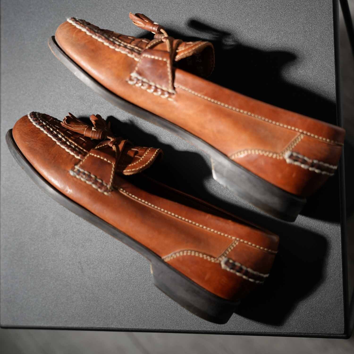 古着 90s〜 Johnston & Murphy イントレチャート タッセルローファー 約27.5cm相当 (9 1/2M) ブラウン ブラジル製 ヴィンテージ ジョンストン&マーフィー 靴 シューズ【furugi-1914】