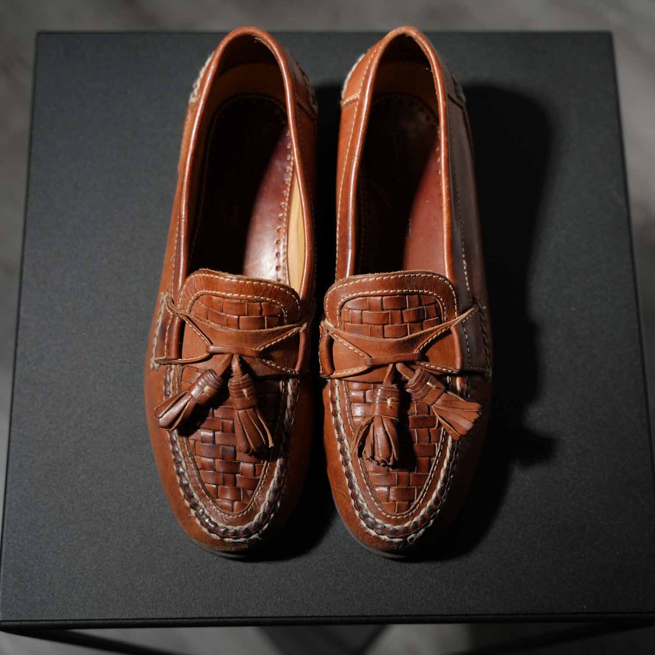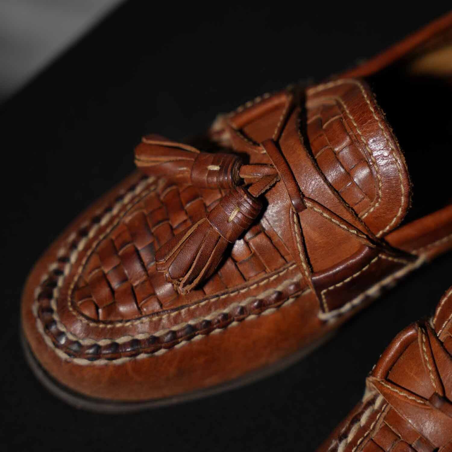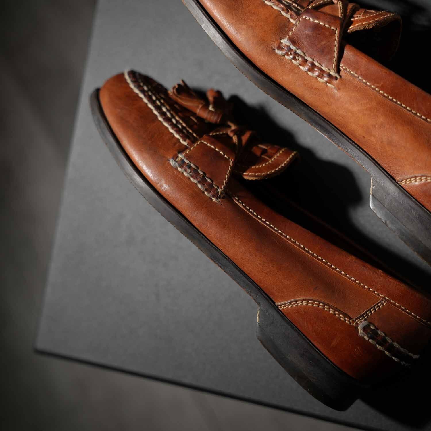古着 90s〜 Johnston & Murphy イントレチャート タッセルローファー 約27.5cm相当 (9 1/2M) ブラウン ブラジル製 ヴィンテージ ジョンストン&マーフィー 靴 シューズ【furugi-1914】