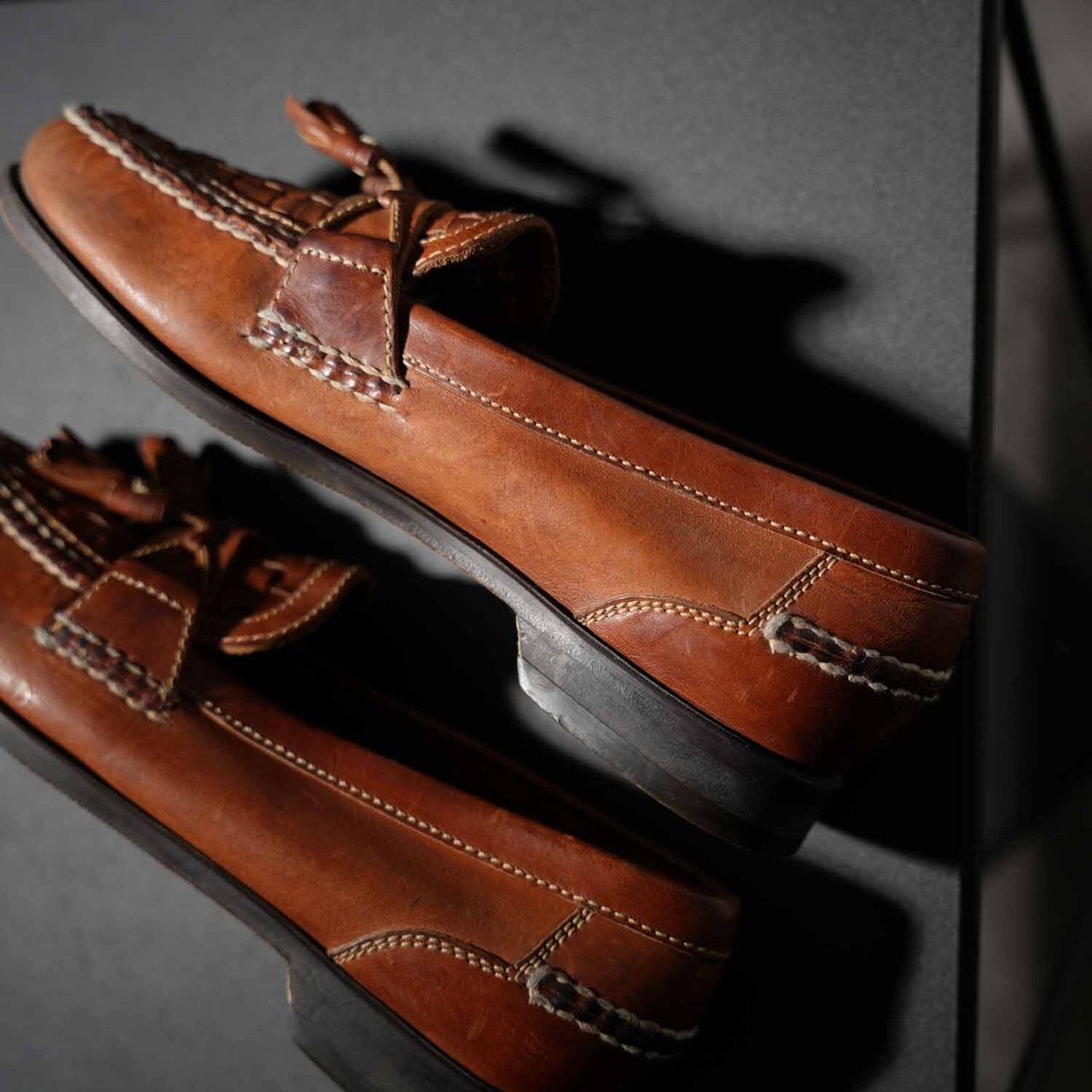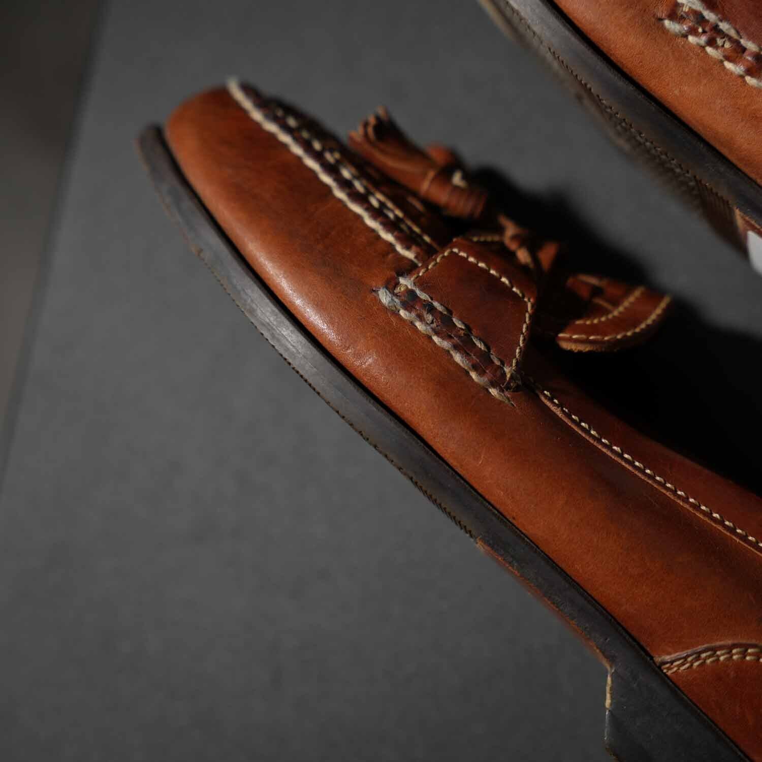 この時代のブラジル製は、現行の大量生産品とは一線を画す革質の良さと、丁寧なモカ縫いが特徴。