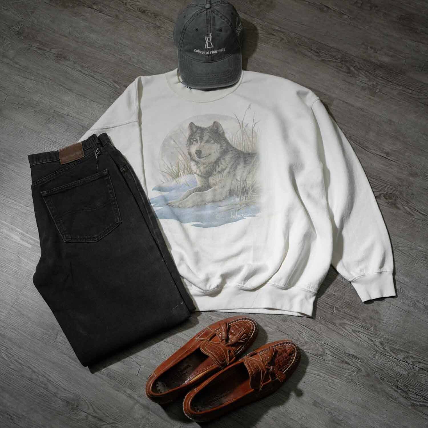 ソックスで遊ぶのはもちろん、素足履きを彷彿とさせるスタイルで軽快にこなすのも、大人の古着スタイルの醍醐味です。