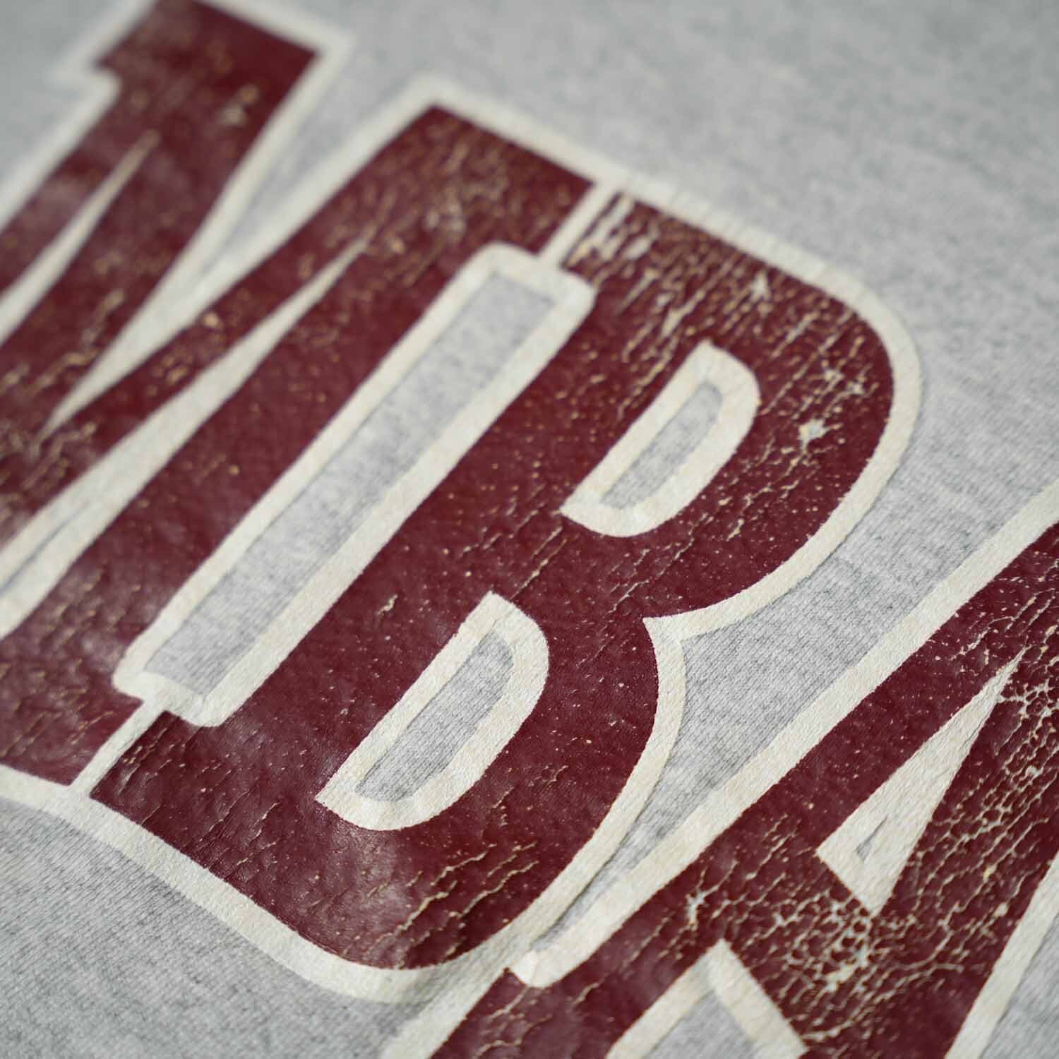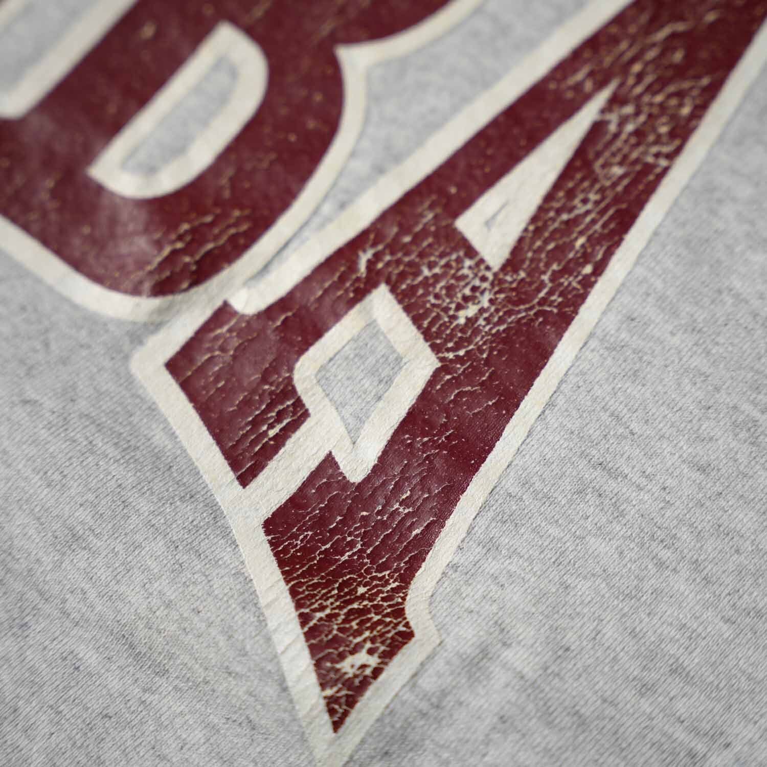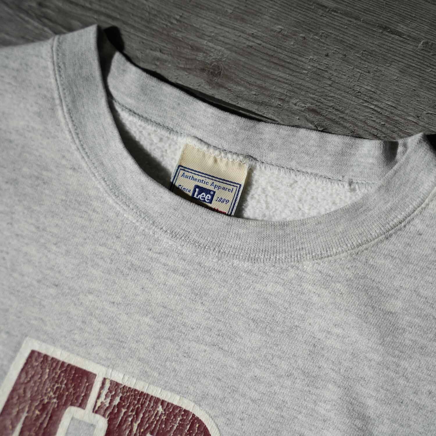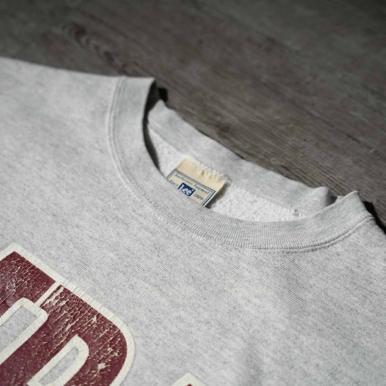 古着 Lee “MBA” カレッジ ラバープリント スウェット ヘザーグレー ボルドー(レッドブラウン) ヴィンテージ リー アーチロゴ ヘビーウェイト アメカジ【furugi-1956】