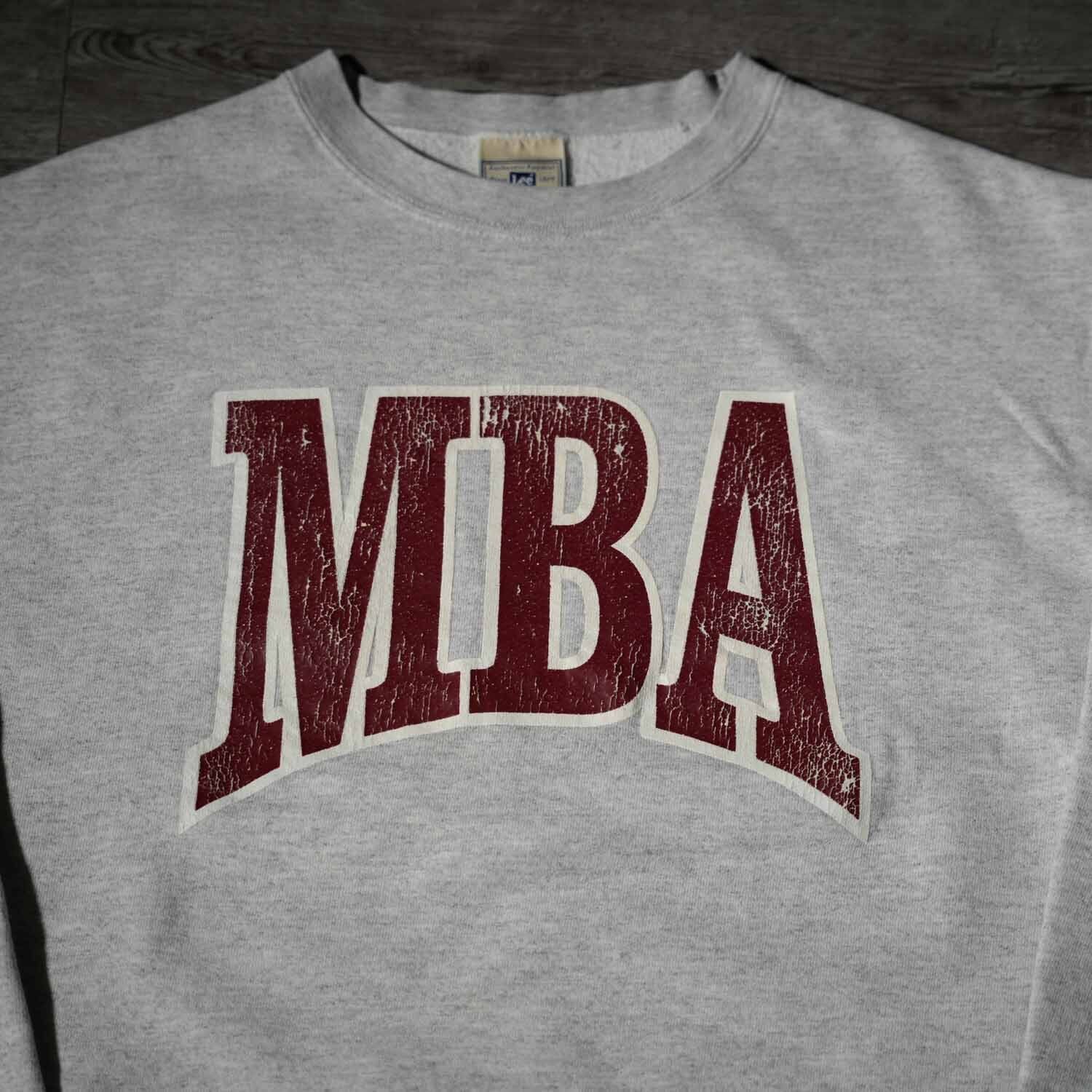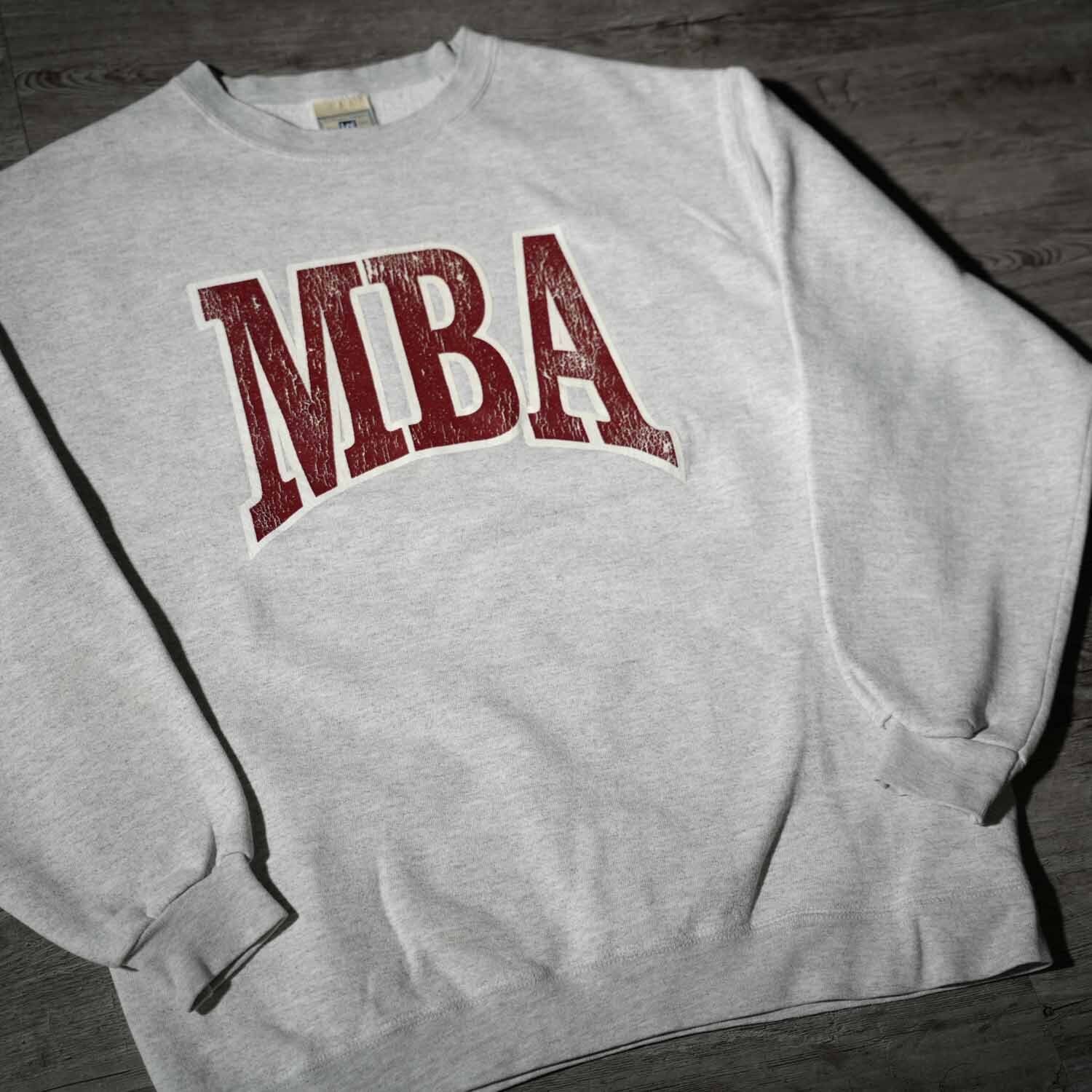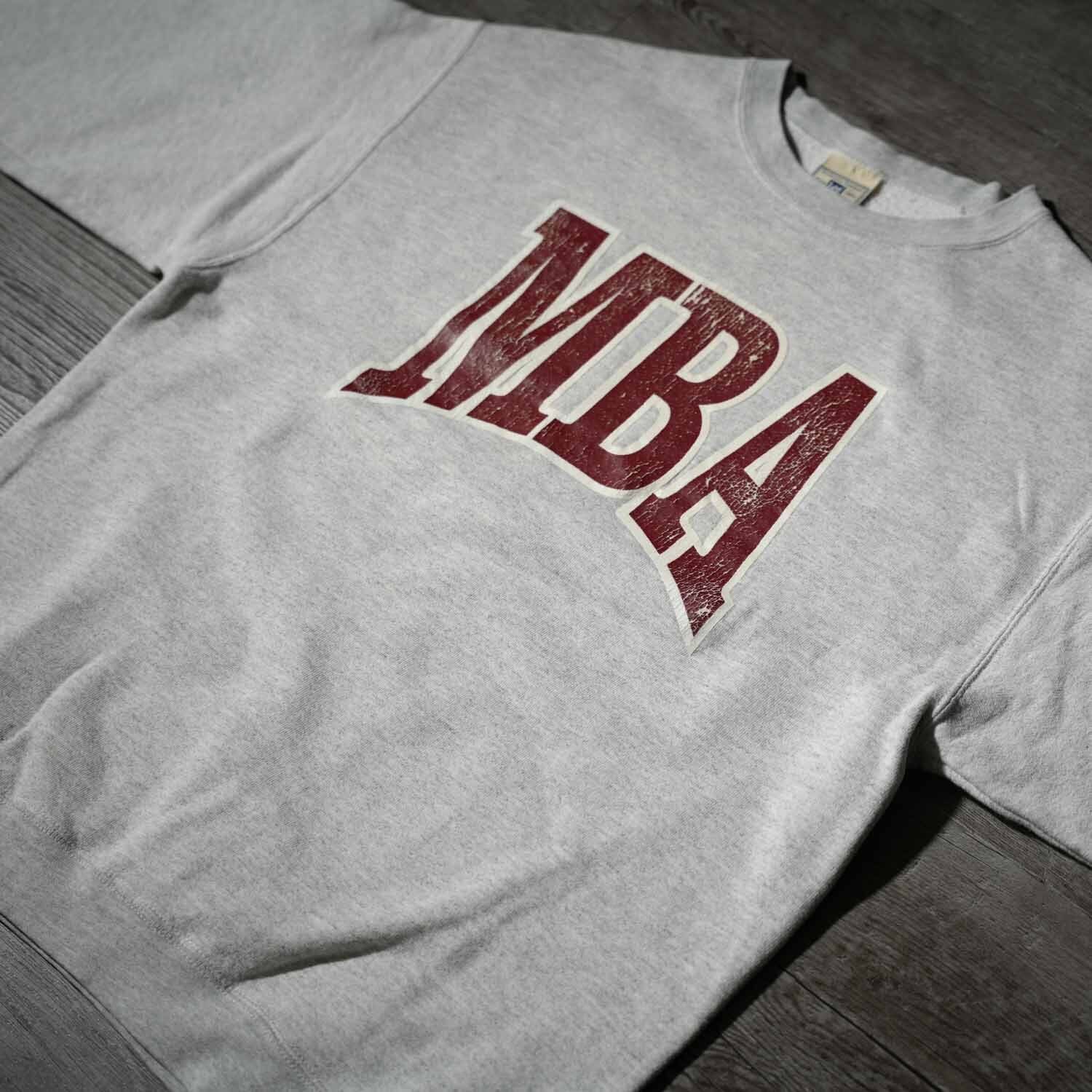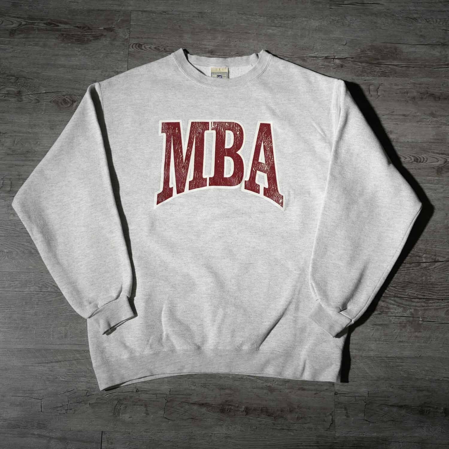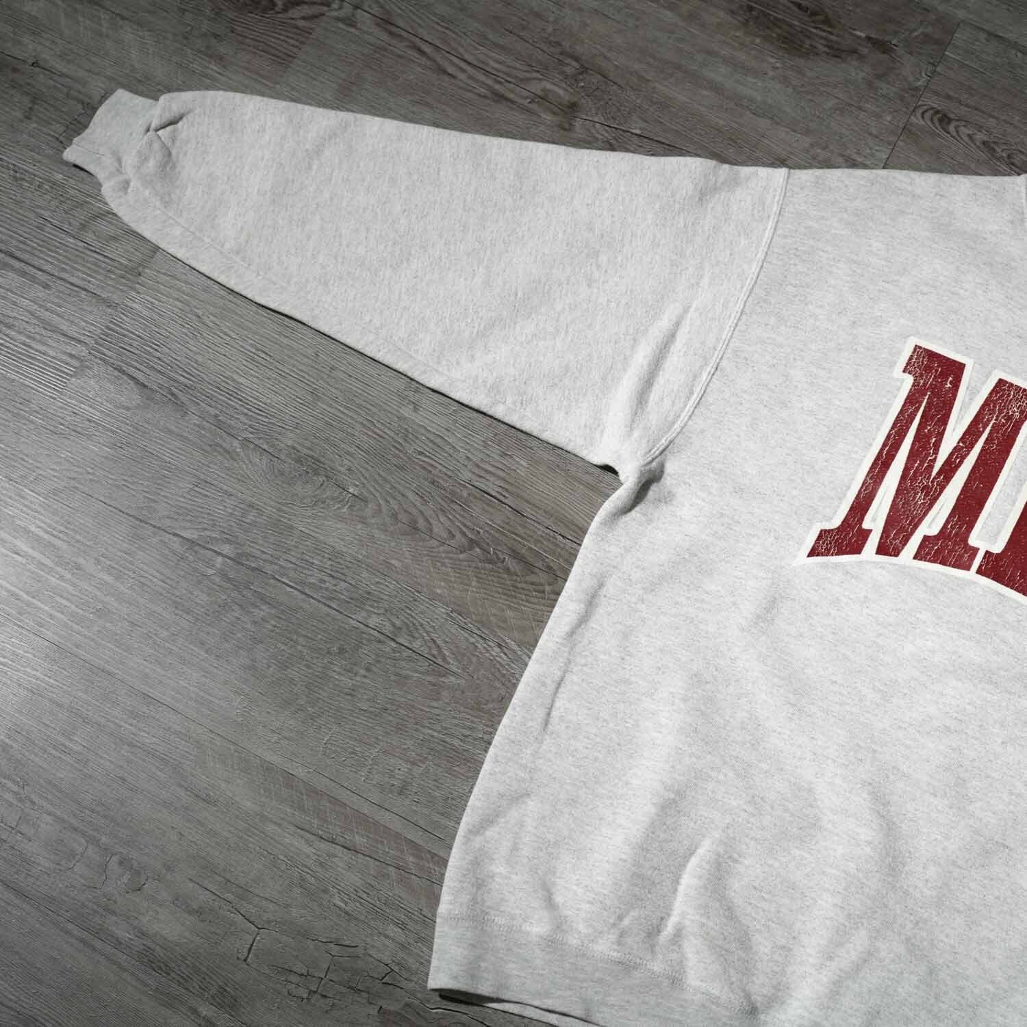 古着 Lee “MBA” カレッジ ラバープリント スウェット ヘザーグレー ボルドー(レッドブラウン) ヴィンテージ リー アーチロゴ ヘビーウェイト アメカジ【furugi-1956】