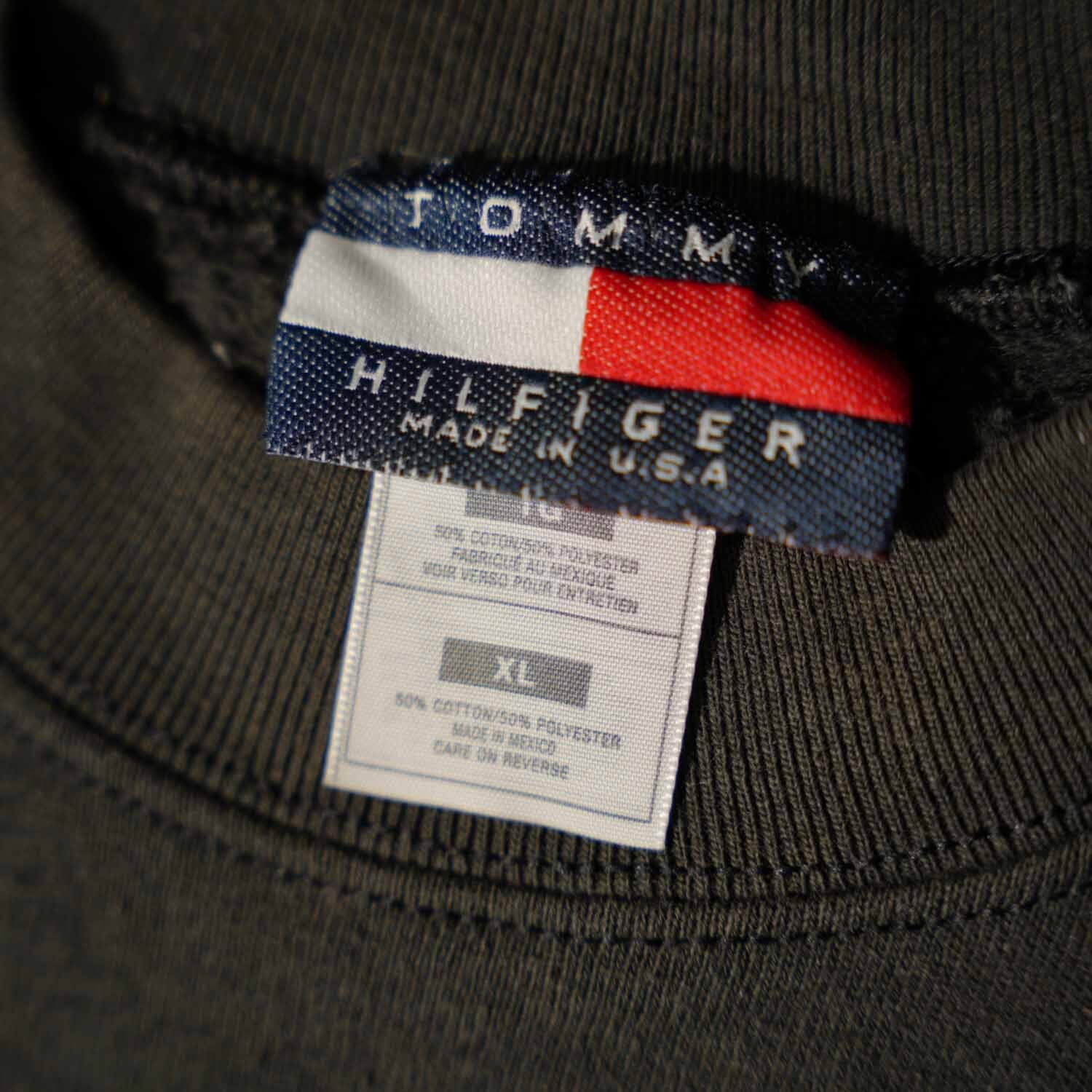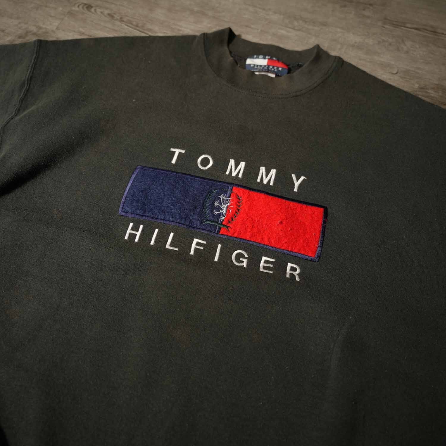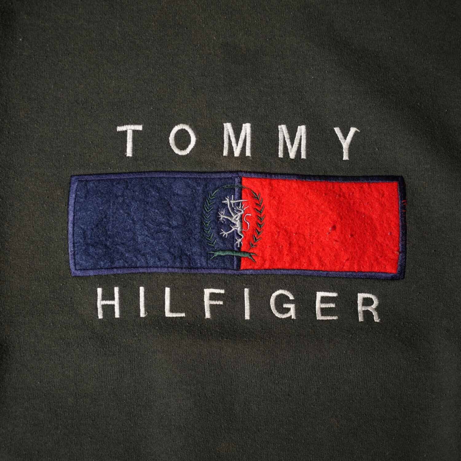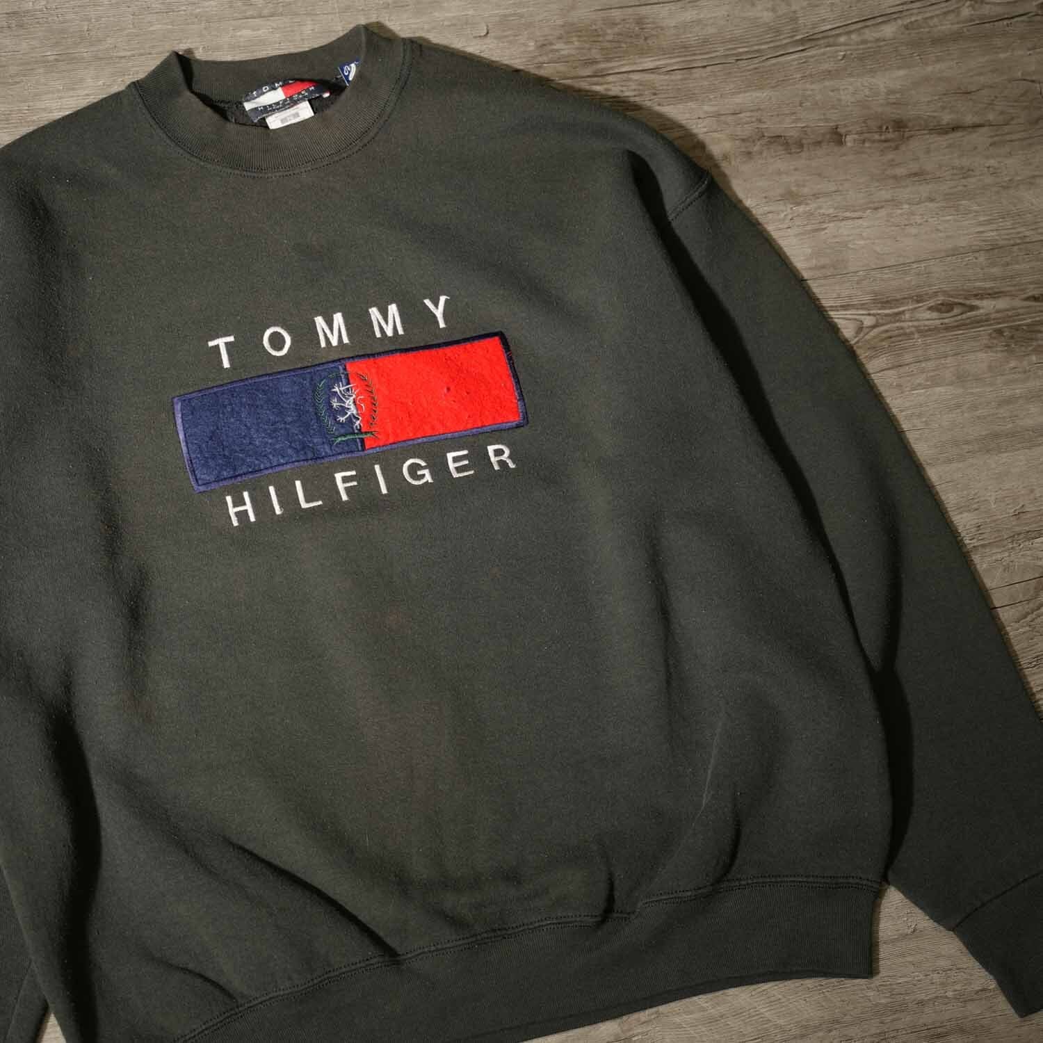 古着 90s Vintage TOMMY HILFIGER フラッグロゴ 刺繍 スウェット ボックスシルエット XL ダークグレー メキシコ製 トミーヒルフィガー ヴィンテージ【furugi-1961】