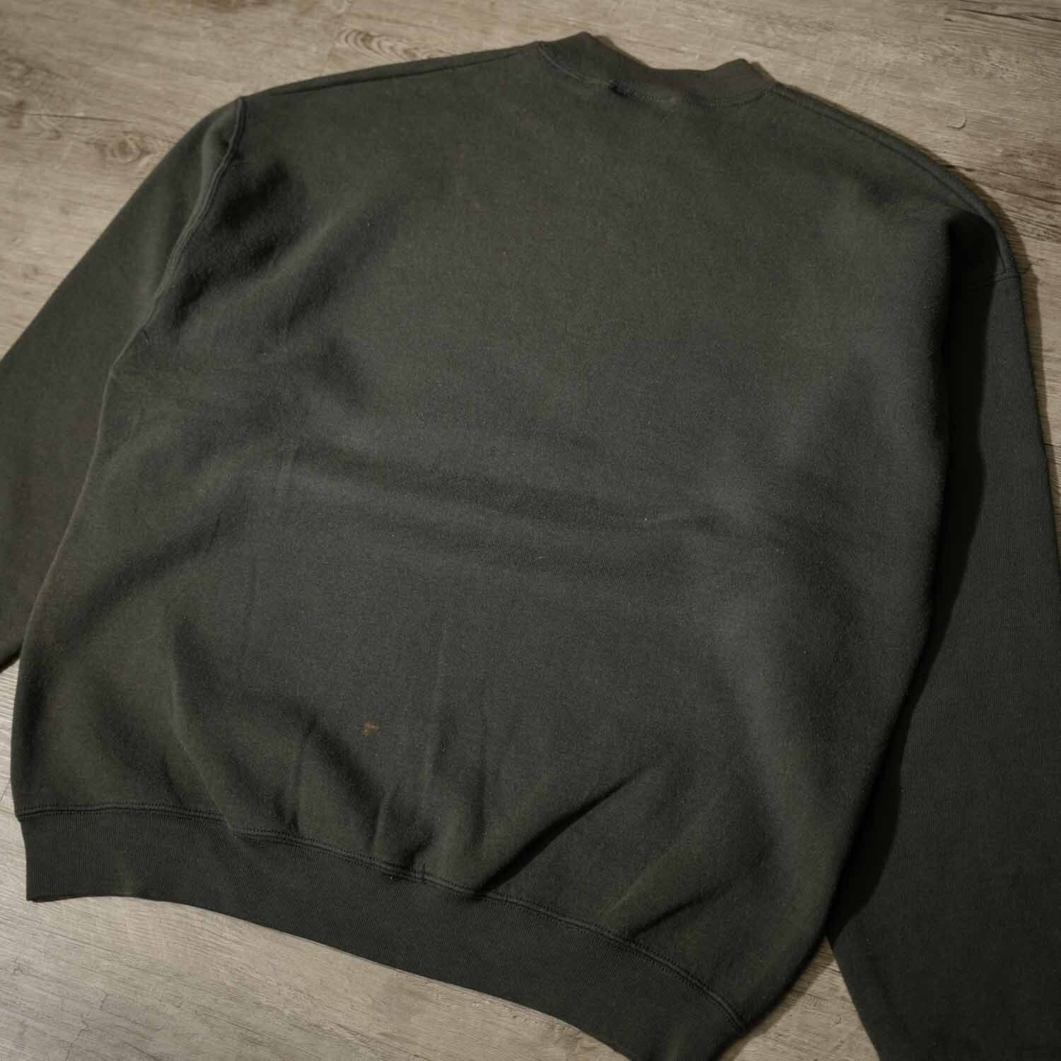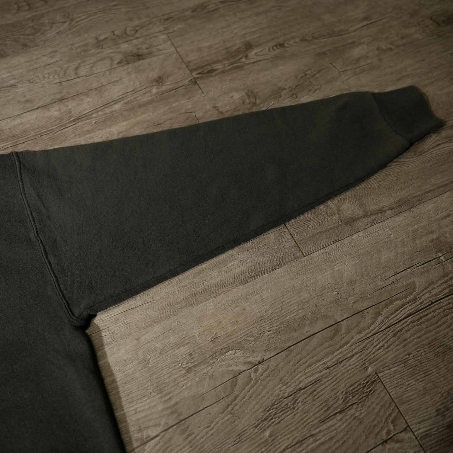 元のブラックが馴染み、奥行きのあるダークグレーへと変化したボディは、ヴィンテージ古着でしか味わえない唯一無二の表情を湛えています。