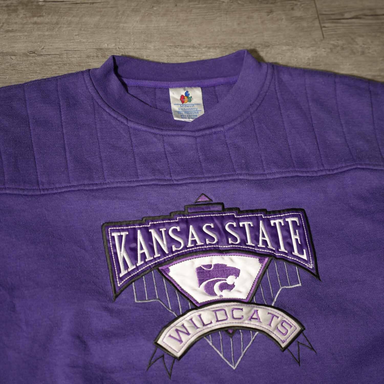 古着/Midwest Embroidery/カジュアル/スウェット/L/コットン/パープル/Kansas State WILDCATS【furugi-1969】