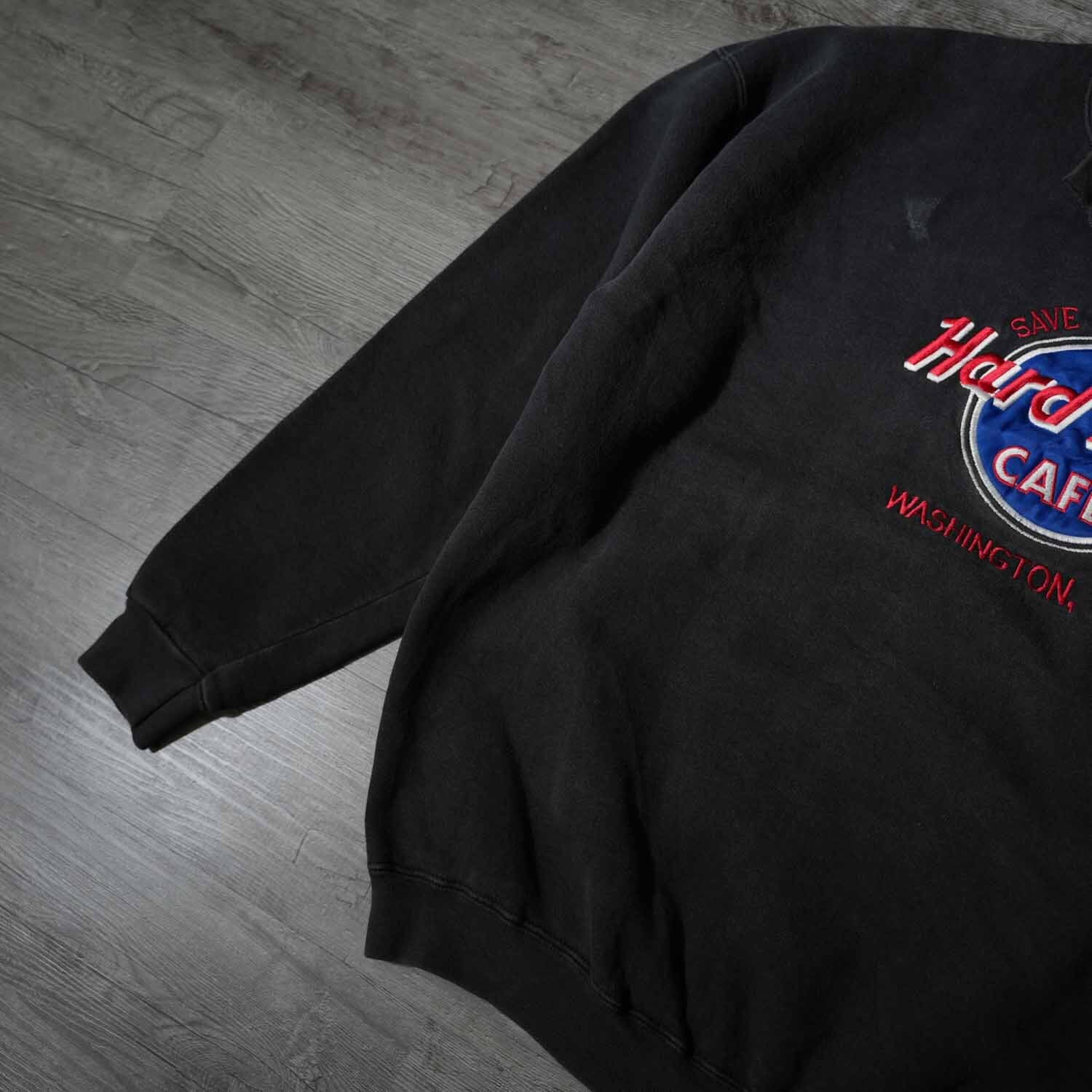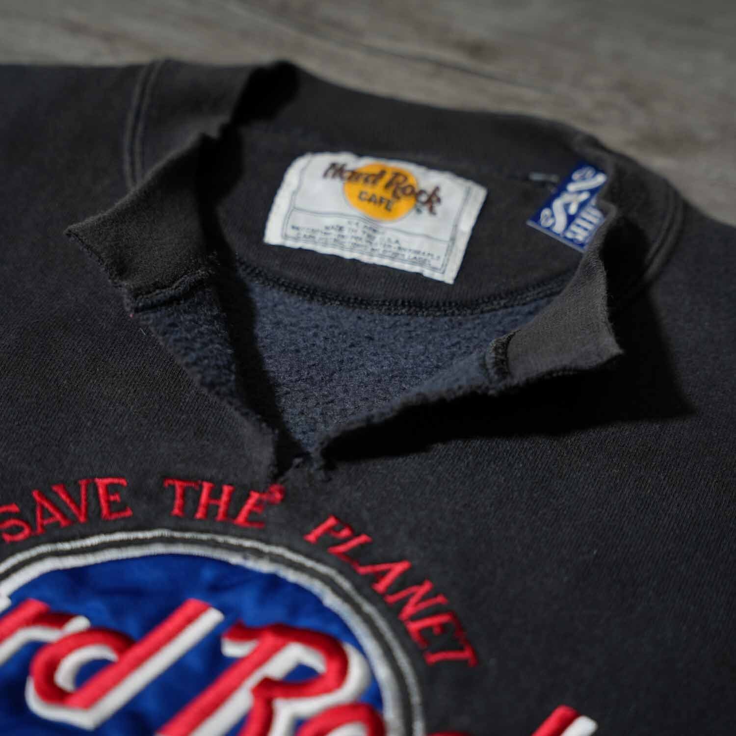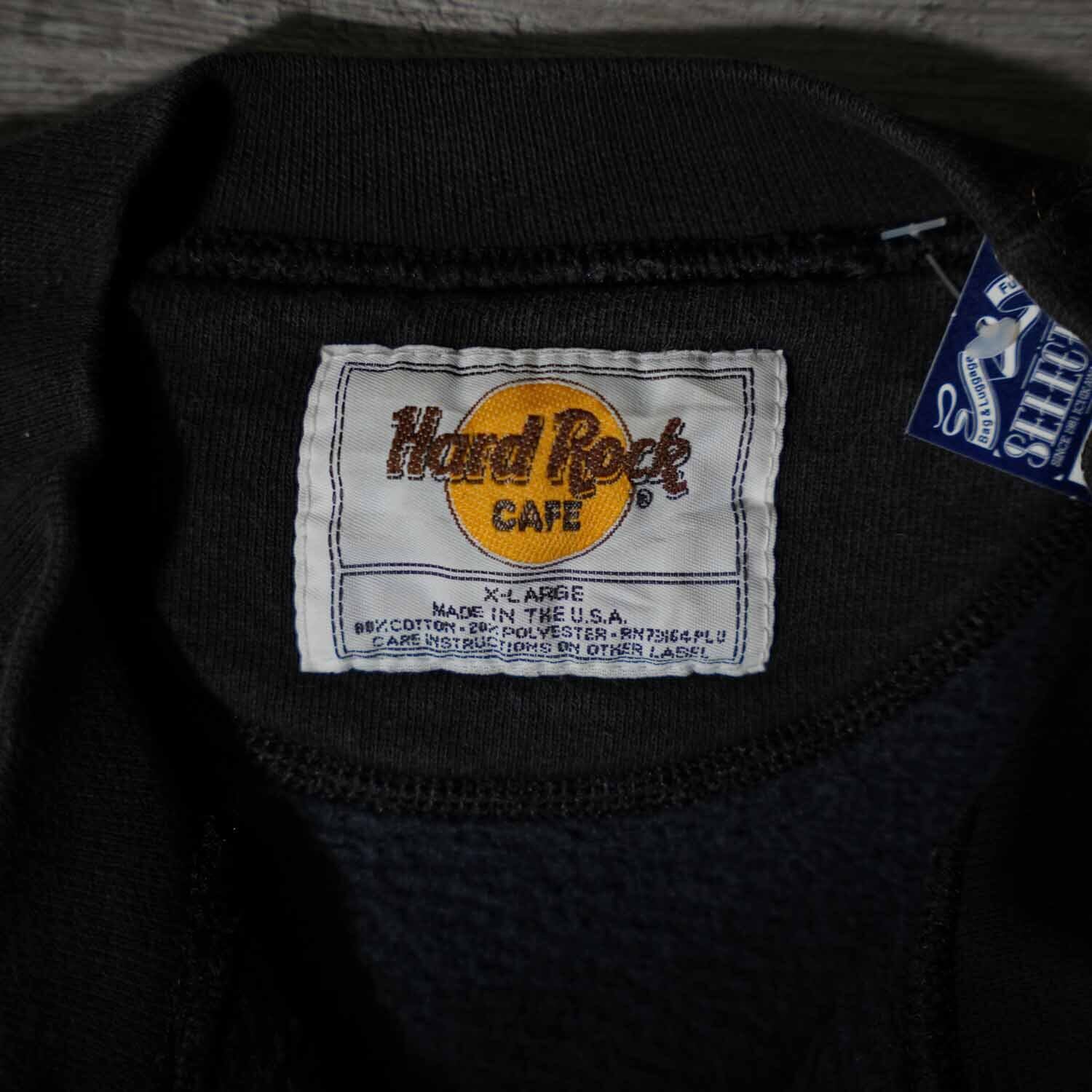 古着 90s アメリカ製 希少 Hard Rock Cafe Japan ハードロックカフェ カットオフ スウェット XL コットン ブラック アメリカ製 made in usa【furugi-1970】