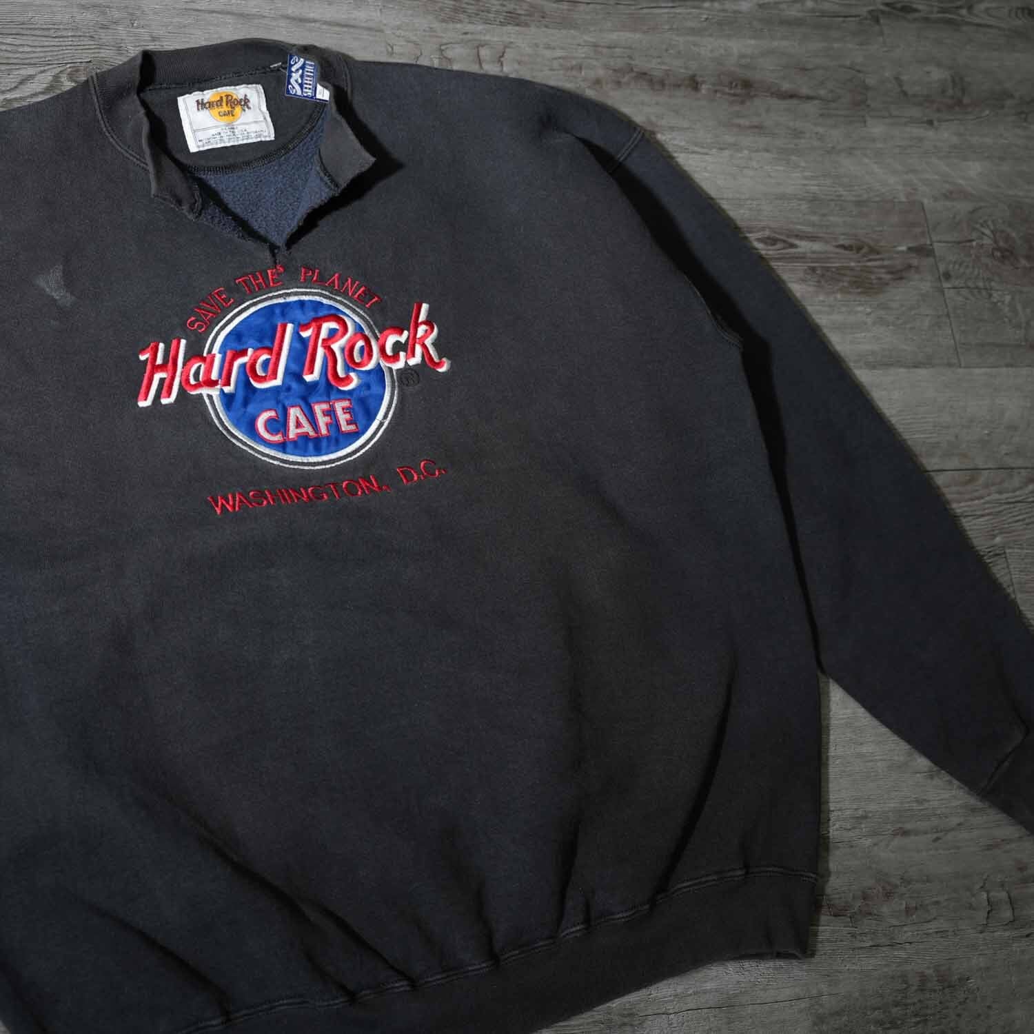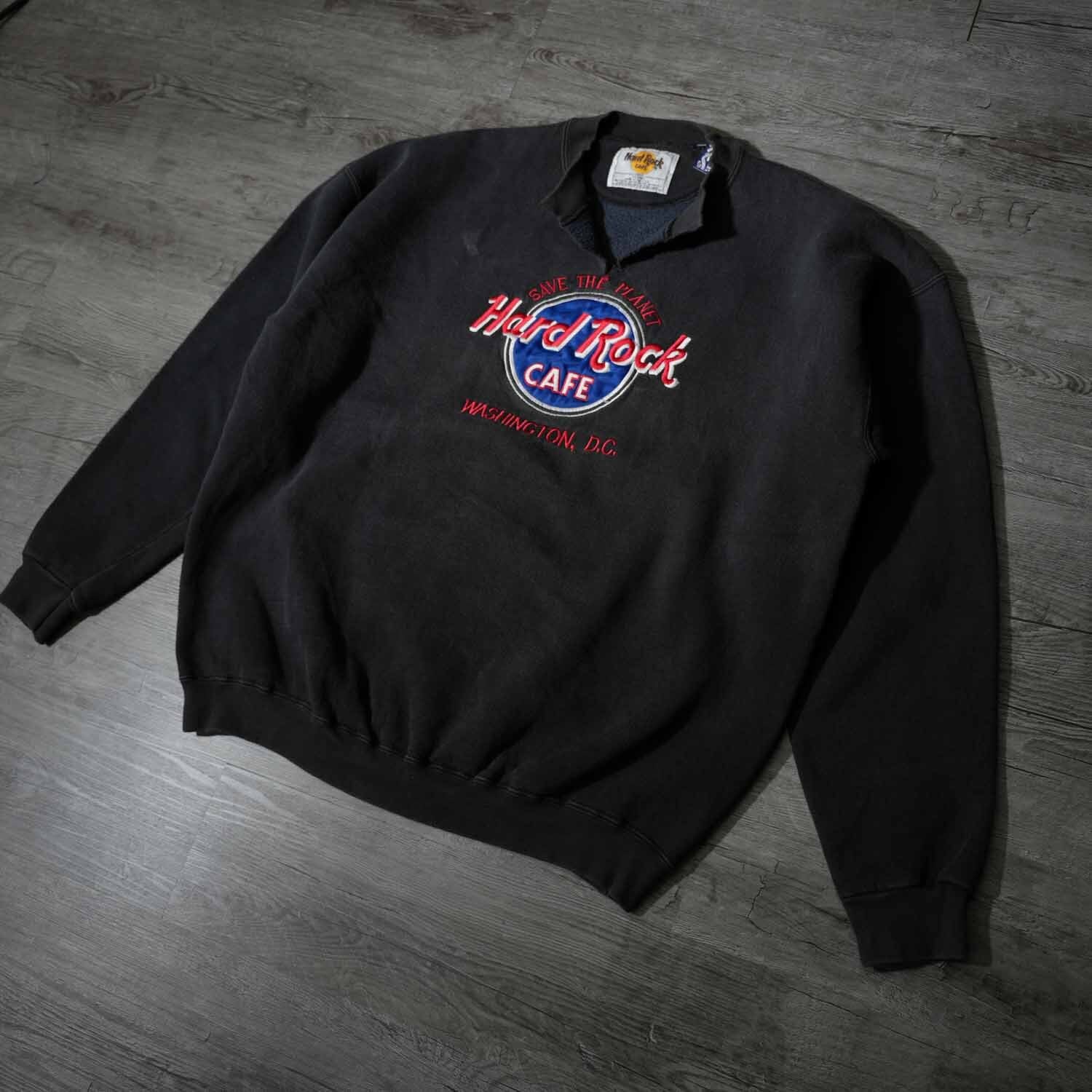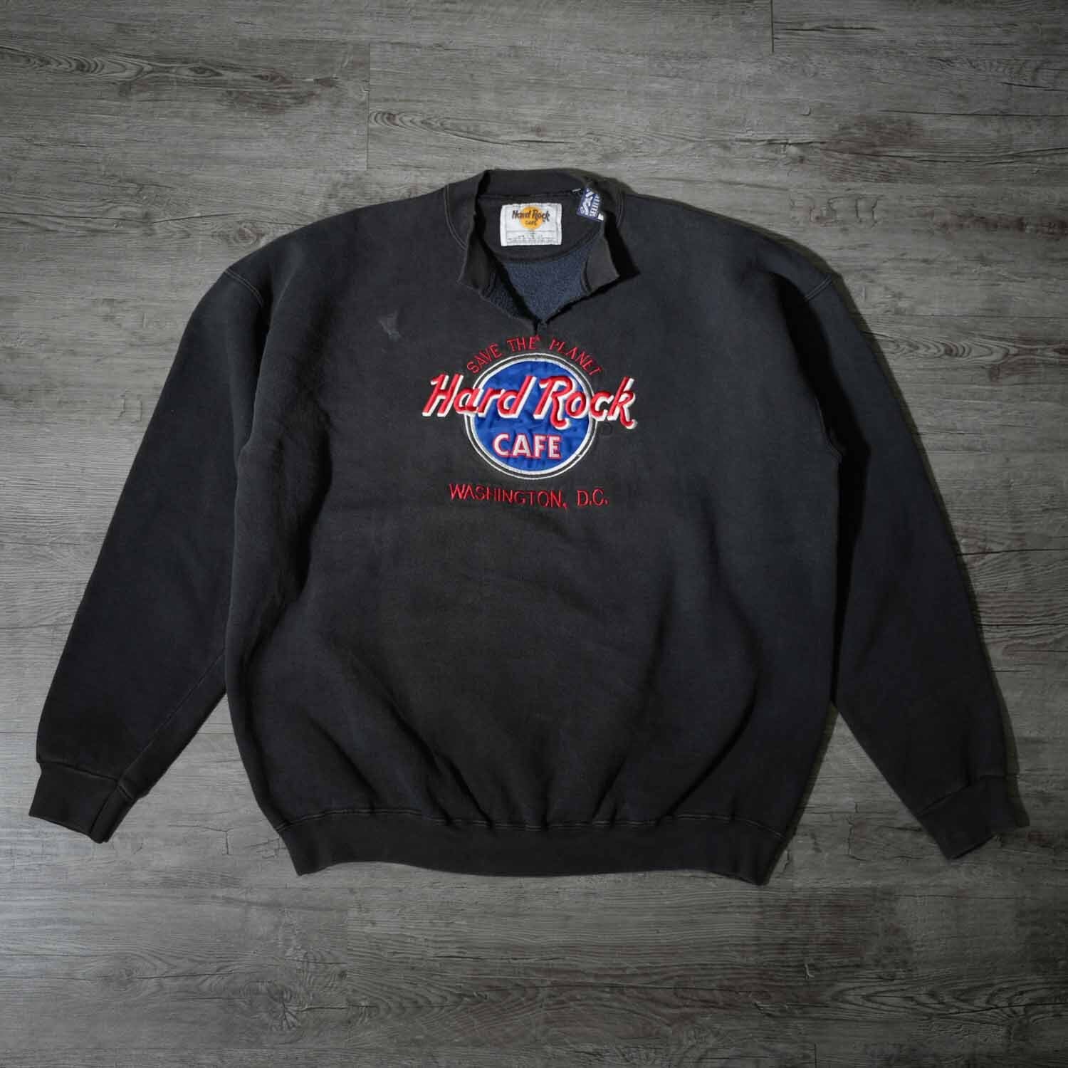 古着 90s アメリカ製 希少 Hard Rock Cafe Japan ハードロックカフェ カットオフ スウェット XL コットン ブラック アメリカ製 made in usa【furugi-1970】