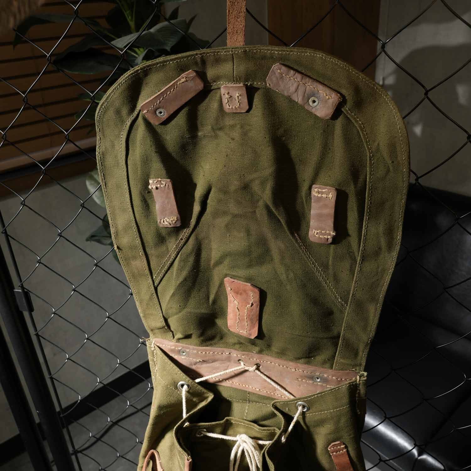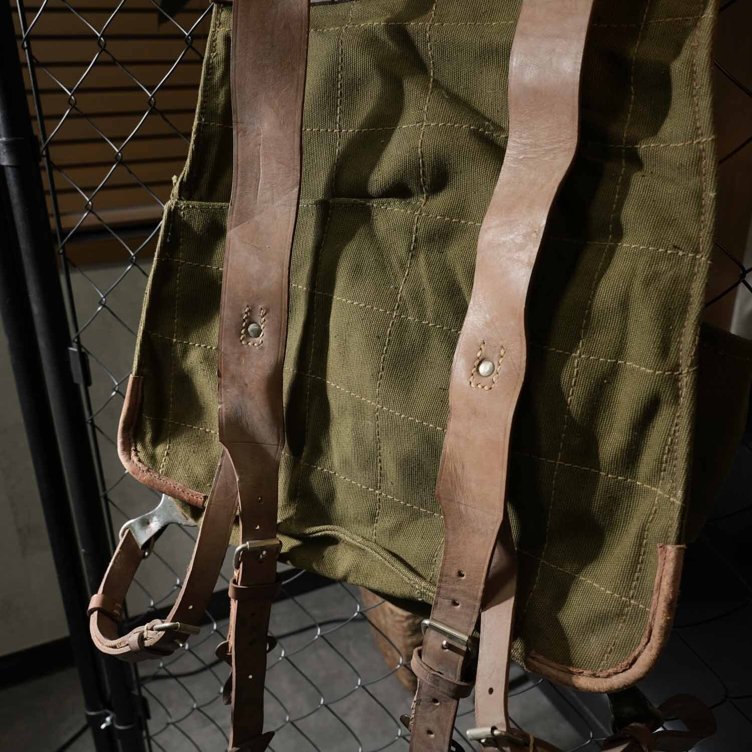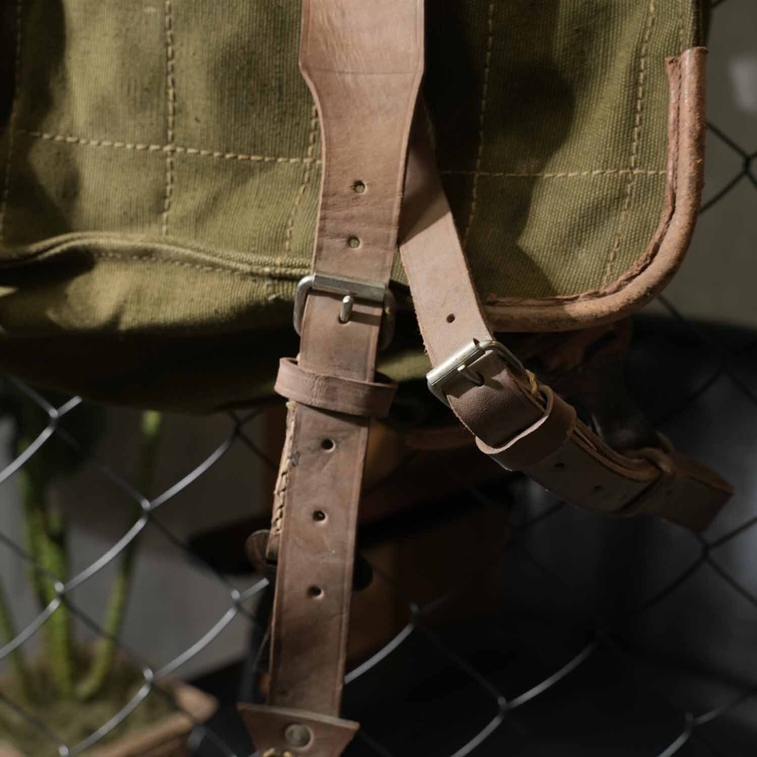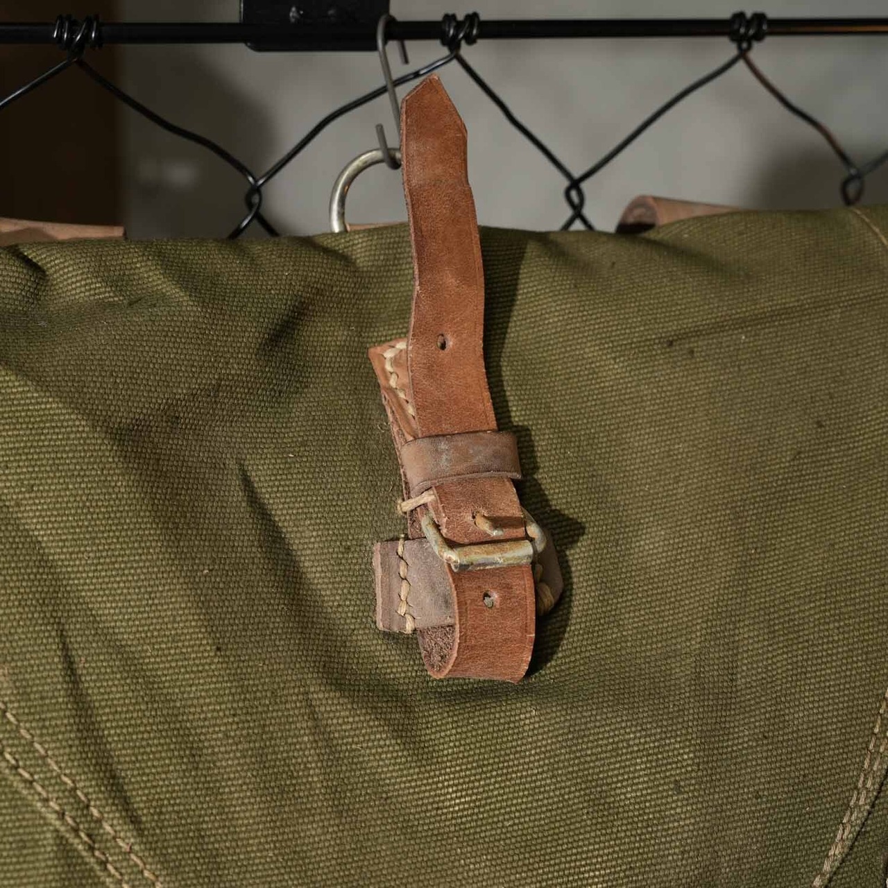 1970年代にルーマニア軍 ミリタリーリュックサックが入荷しました。オリーブドラブの厚手キャンバスとナチュラルレザーを組み合わせた質実剛健な作りは、現行品では味わえない無骨な魅力。
