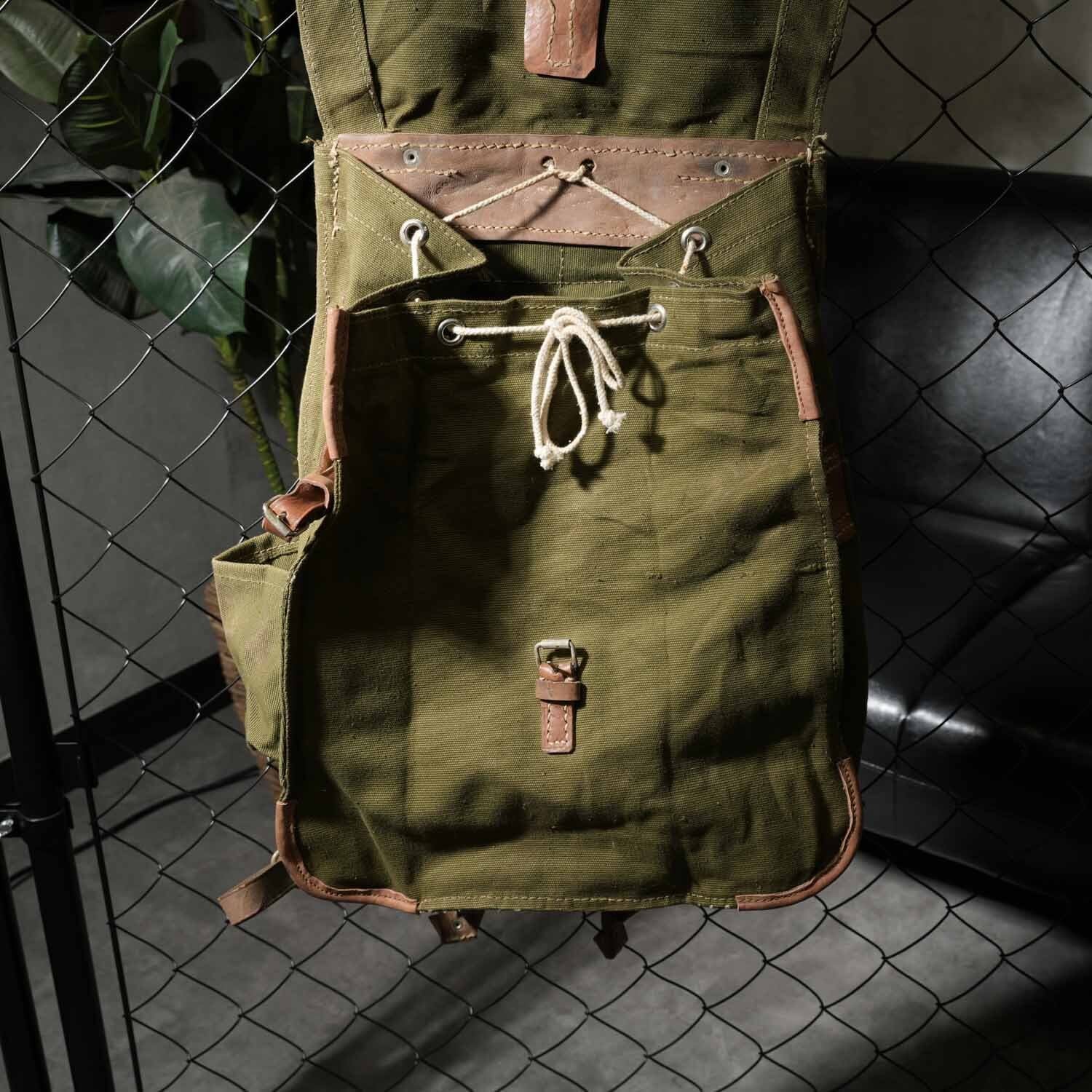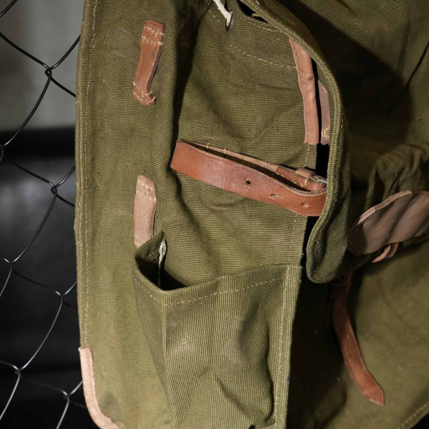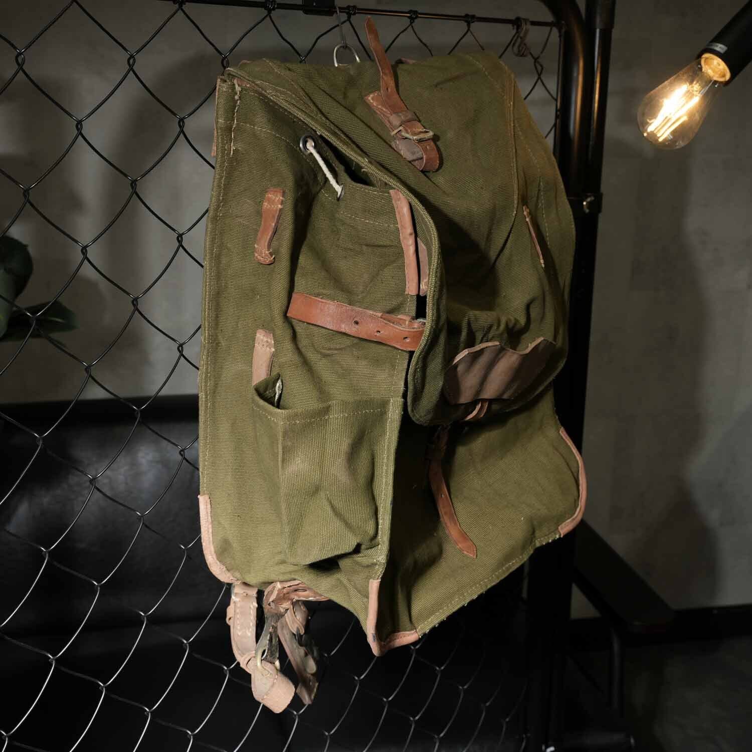 70s ~ 80s ルーマニア軍 リュック ヴィンテージ 大容量 コットン×本革 カーキ ミリタリー バッグ 古着