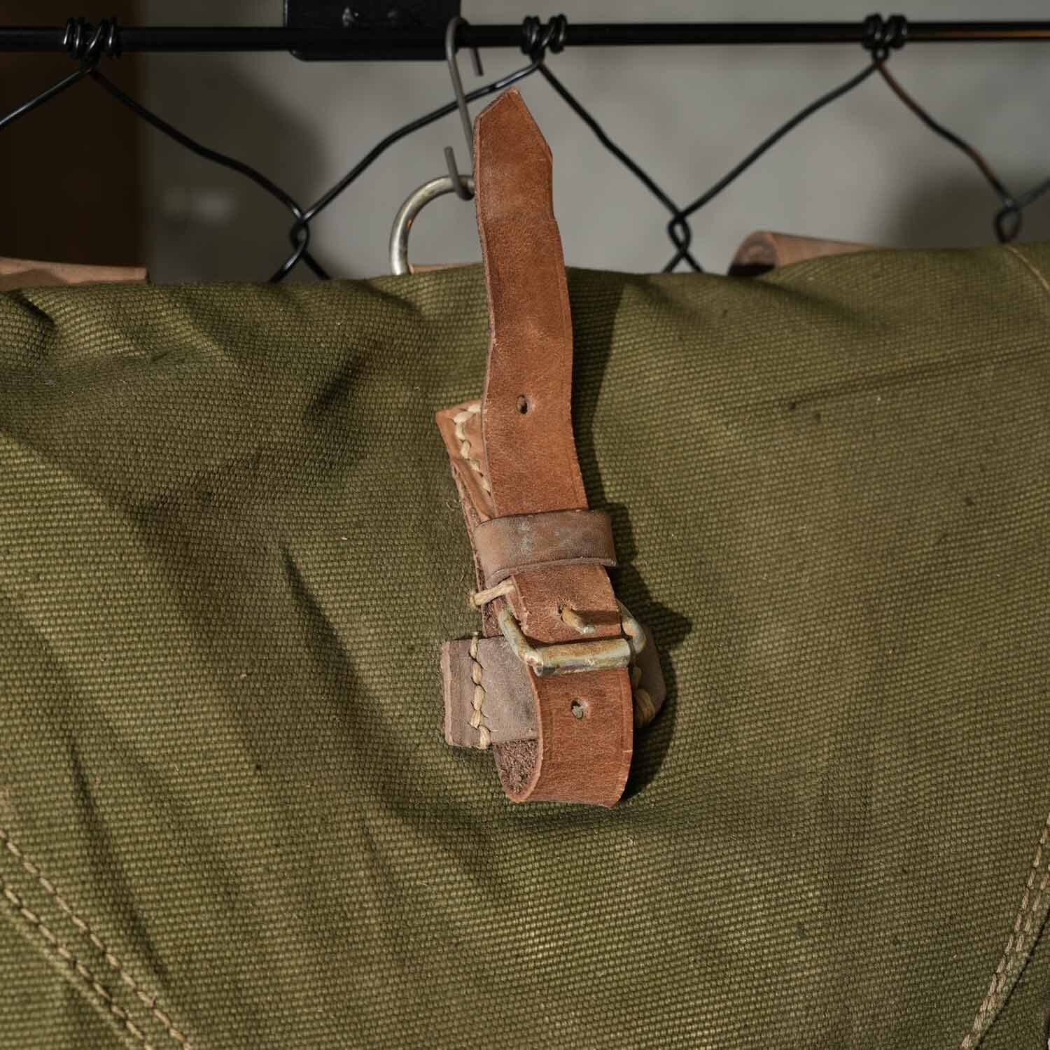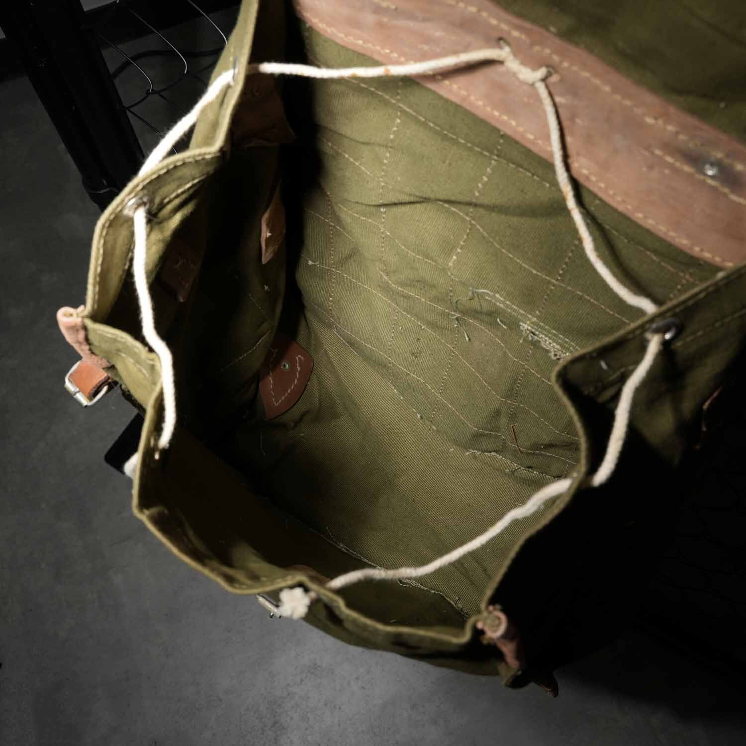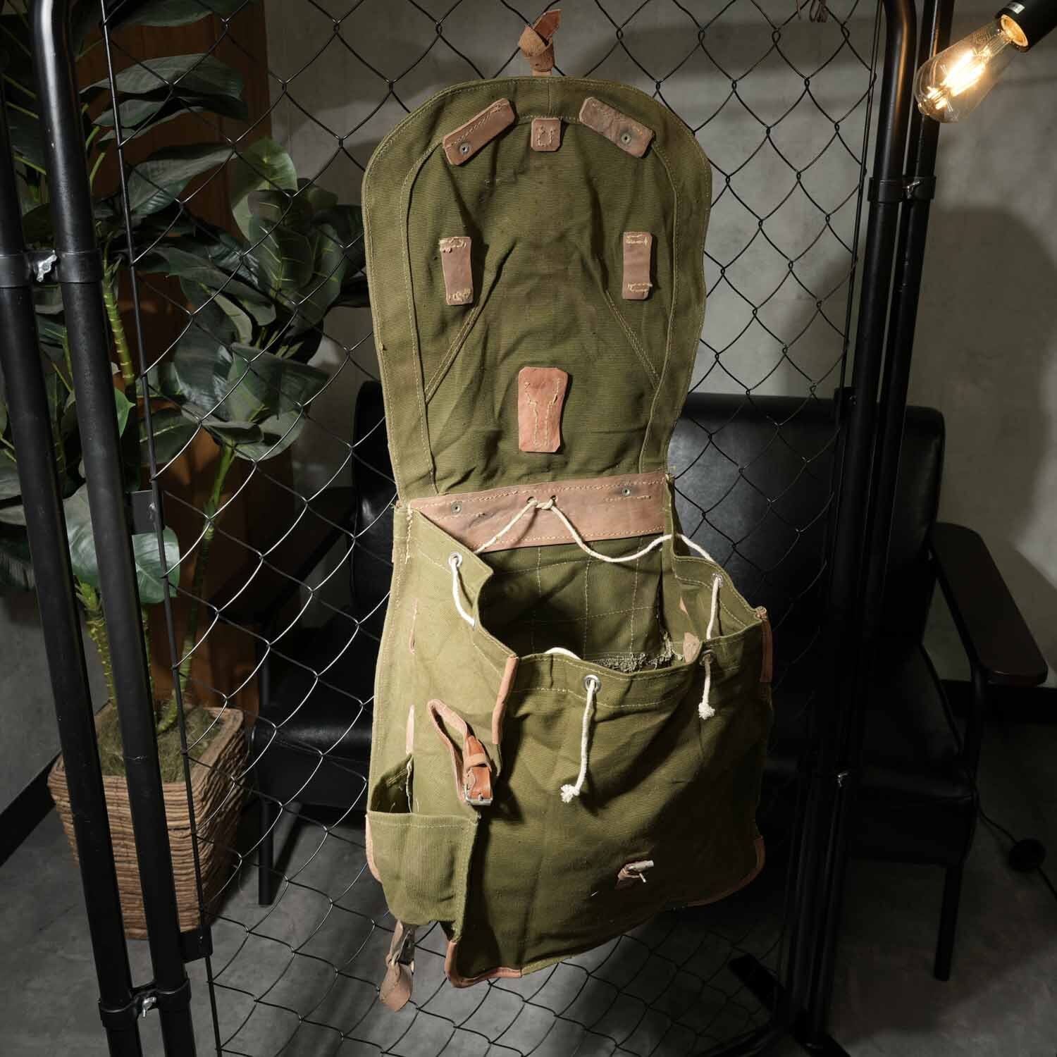70s ~ 80s ルーマニア軍 リュック ヴィンテージ 大容量 コットン×本革 カーキ ミリタリー バッグ 古着