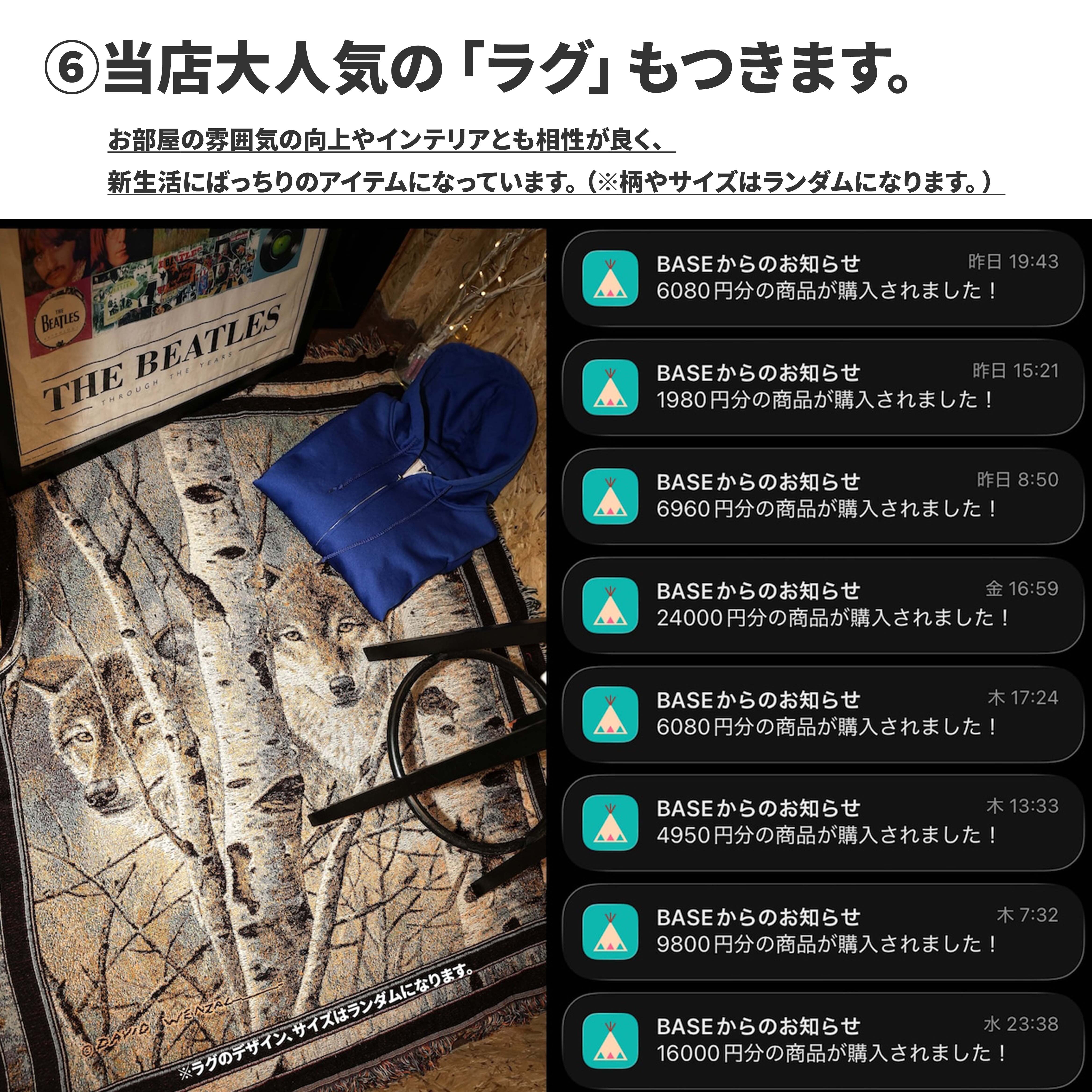 ⑥ヴィンテージラグ:お部屋のランクを格上げします(※柄等はランダム)