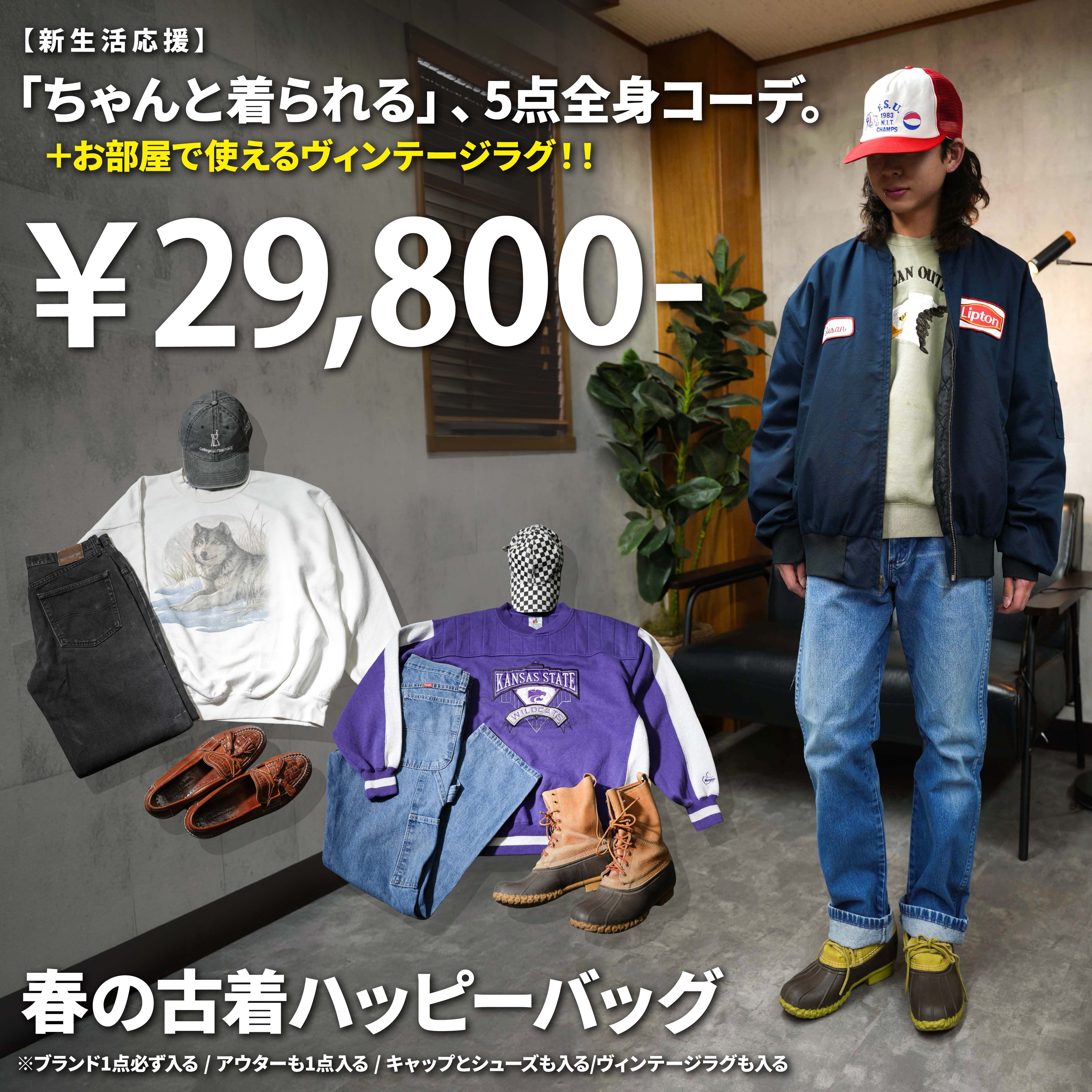 【2026春 新生活応援】古着 全身5点+ヴィンテージラグも入る、コンプリートBOX|シューズ同梱!|ハッピーバッグ|実績のバイヤーが贈る、こだわりぬかれた「ちゃんと使える全身コーディネート」|ヴィンテージ・グッドレギュラー|アメカジコーデ|ストリートコーデ|トラッド|シティボーイ|春夏