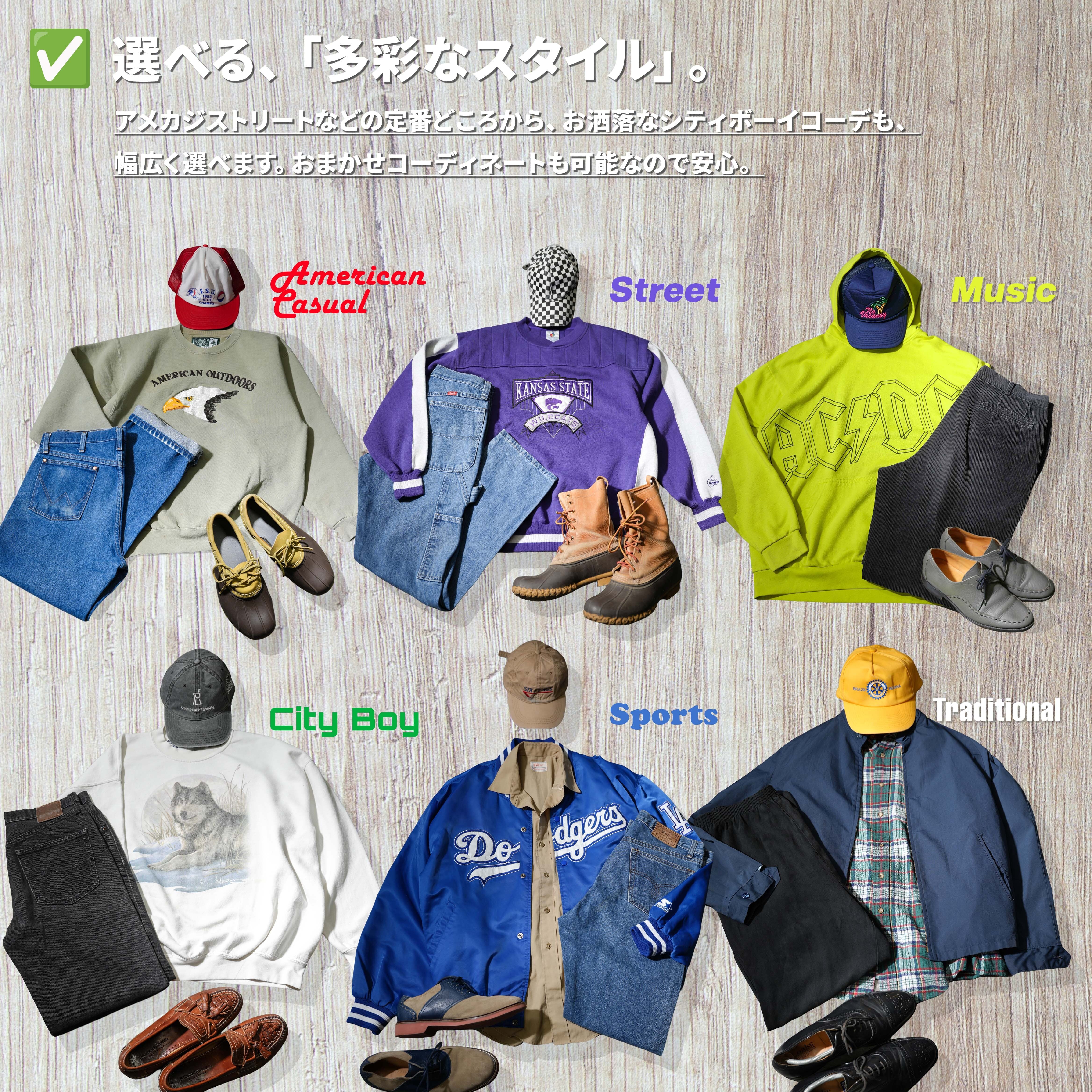 ・様々なスタイリング(アメカジ、ストリート、ワーク、トラッドなど)を、