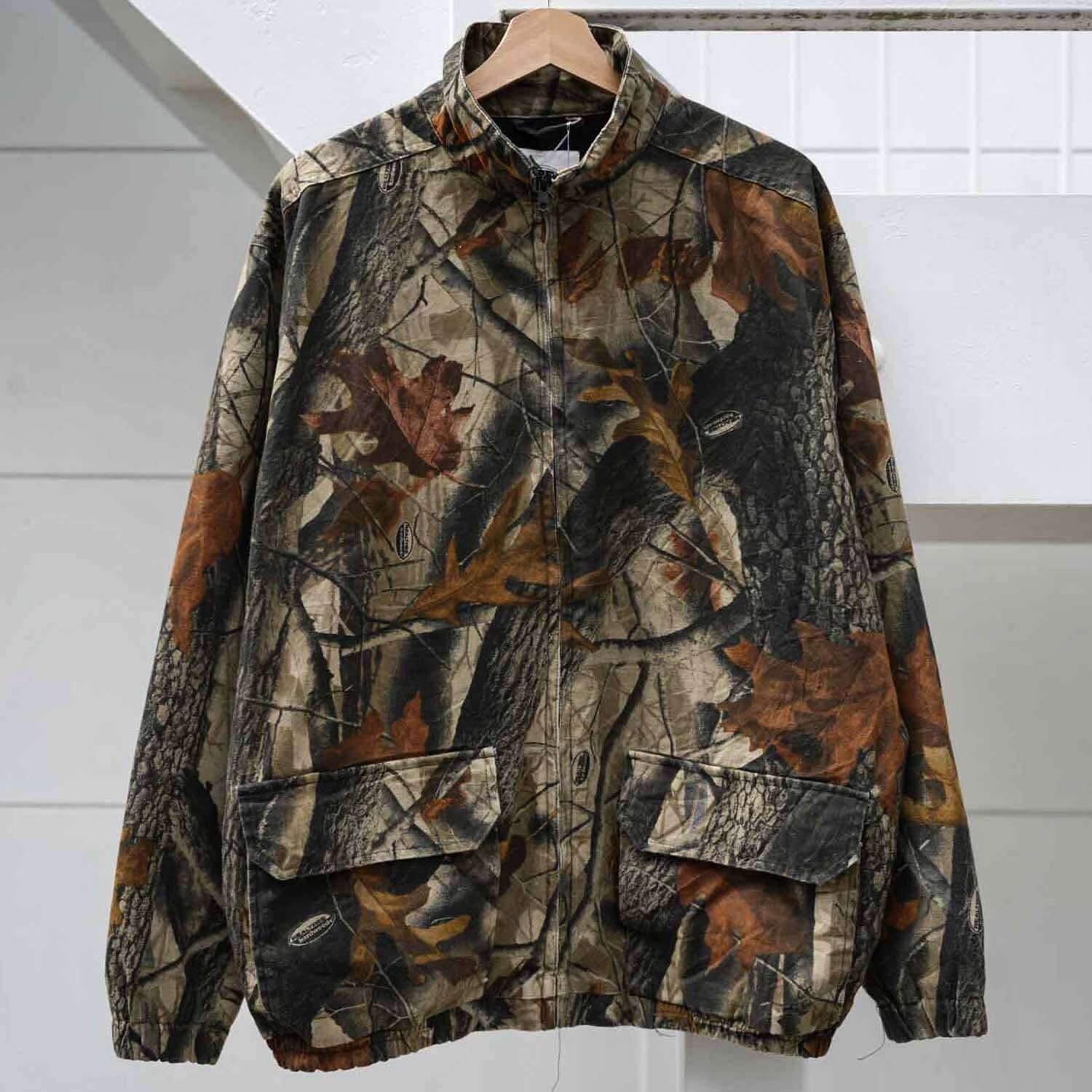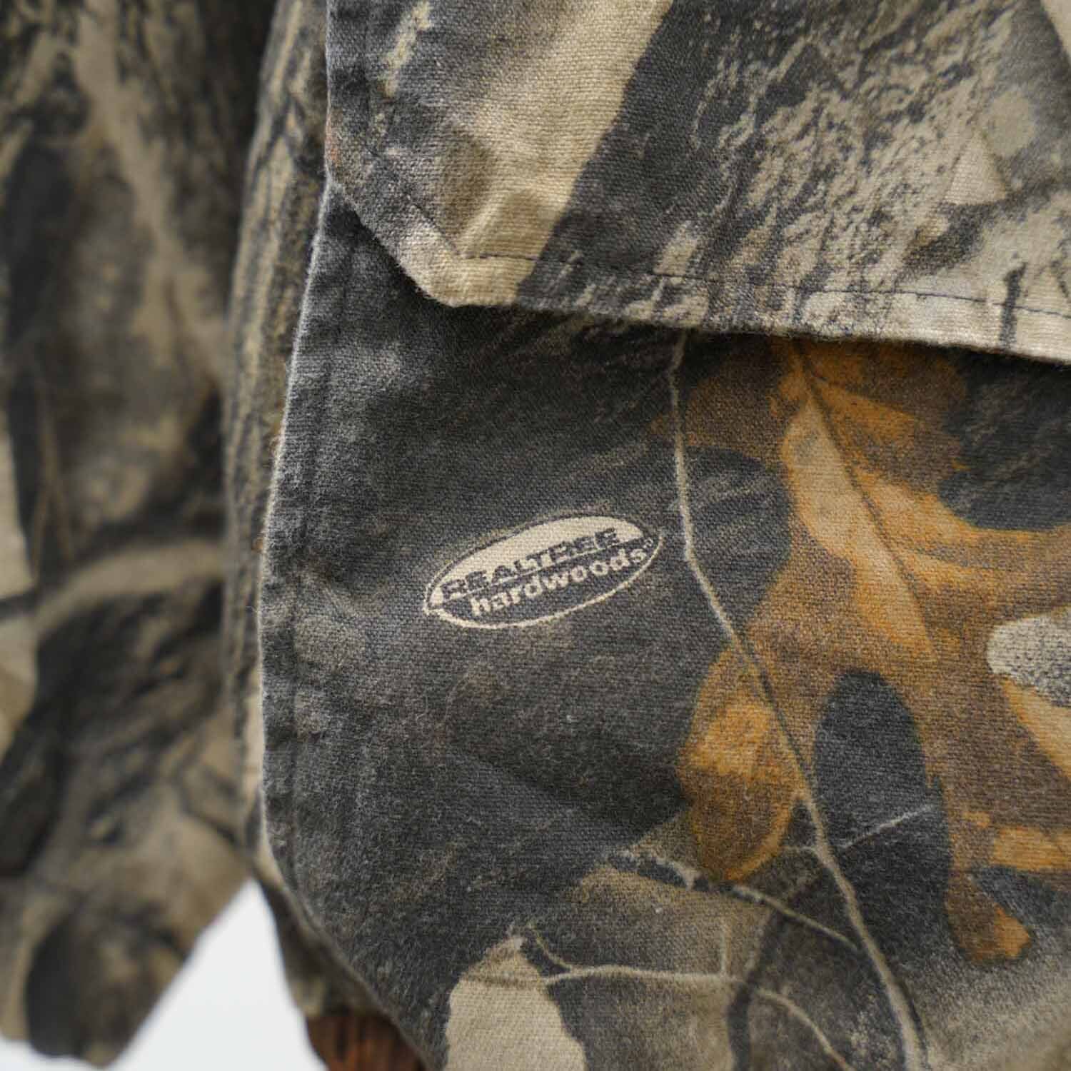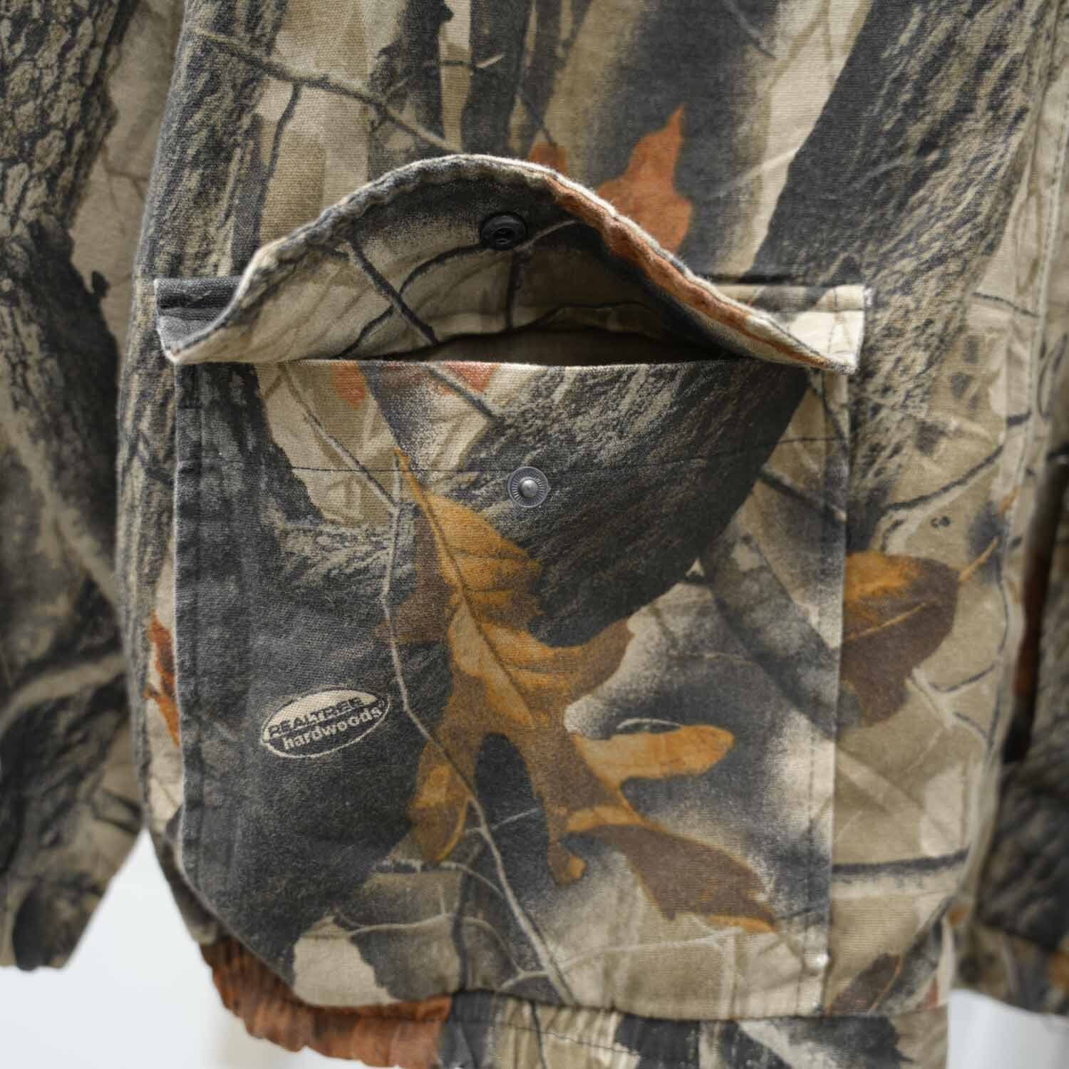 90s-00s WELLS CREEK REALTREE Hardwoods Hunting Jacket リアルツリー カモ 迷彩 スタンドカラー ドリズラー ジャケット M表記 短丈ブルゾン アウター 古着 【furugi-1979】