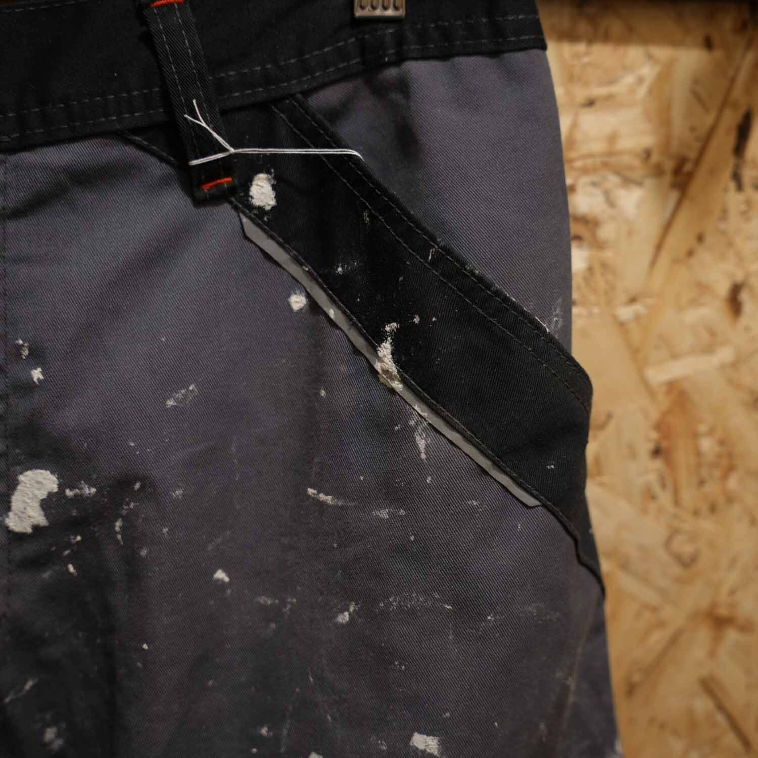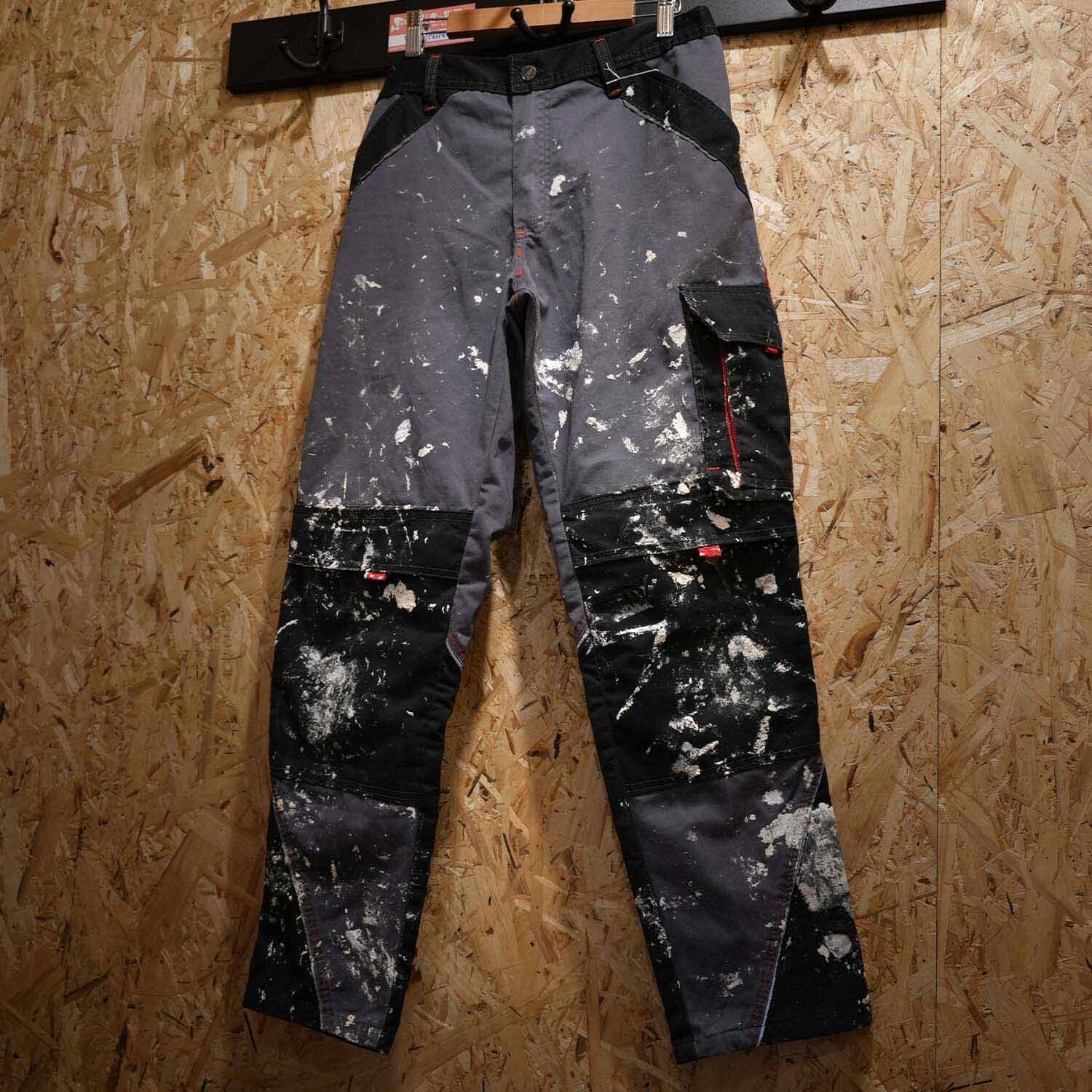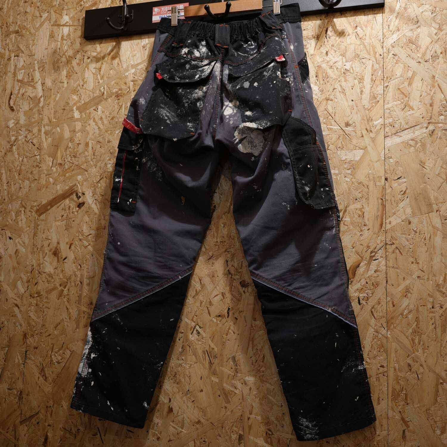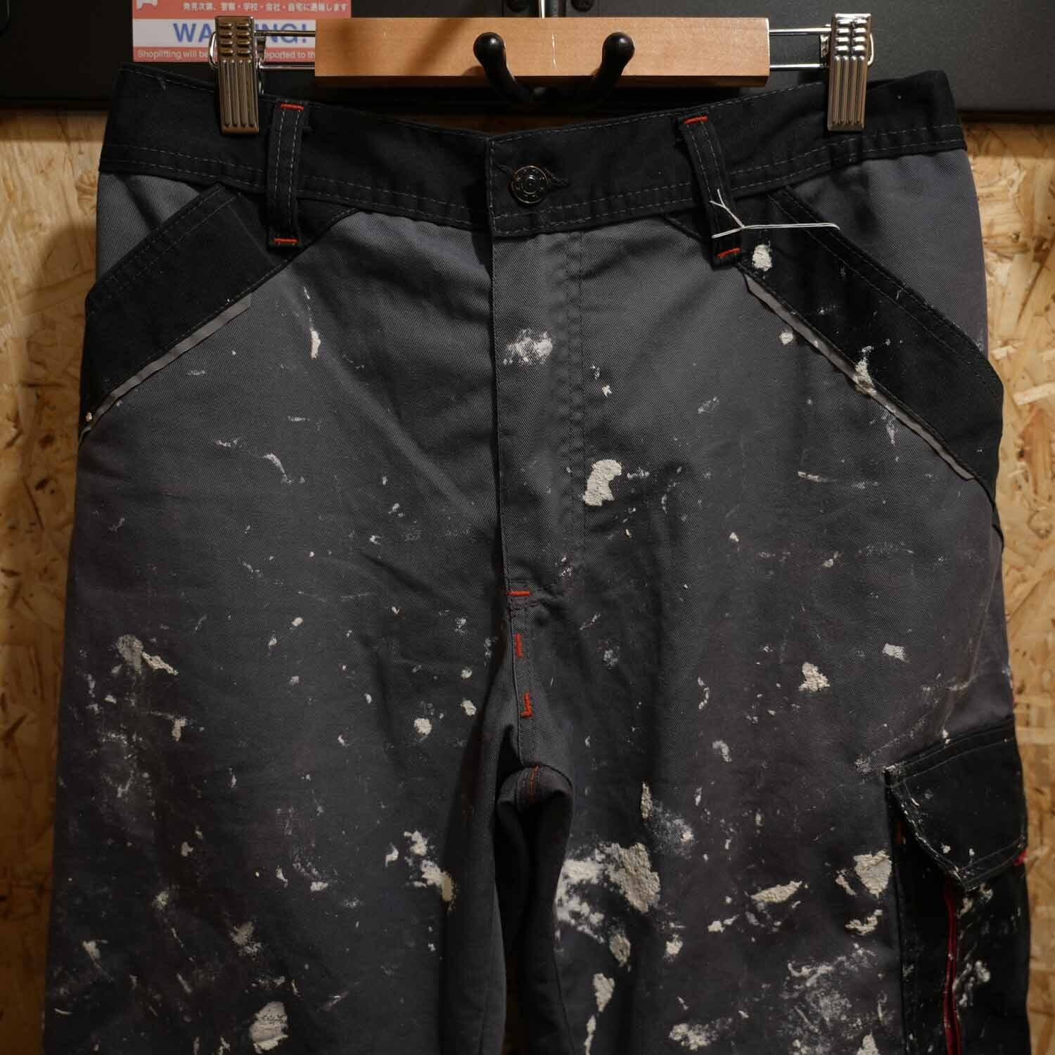 90s-00s Euro Work Cotton Pants ユーロワーク コットン パンツ チャコールグレー リアルペンキ飛び ウエストゴム ボックスストレート 古着 パンツ 【furugi-1998】