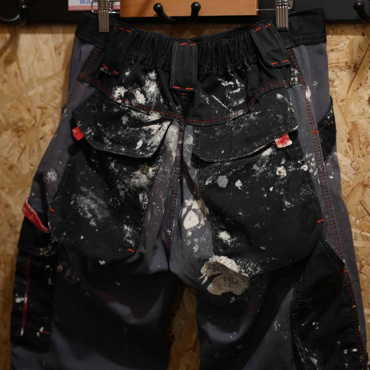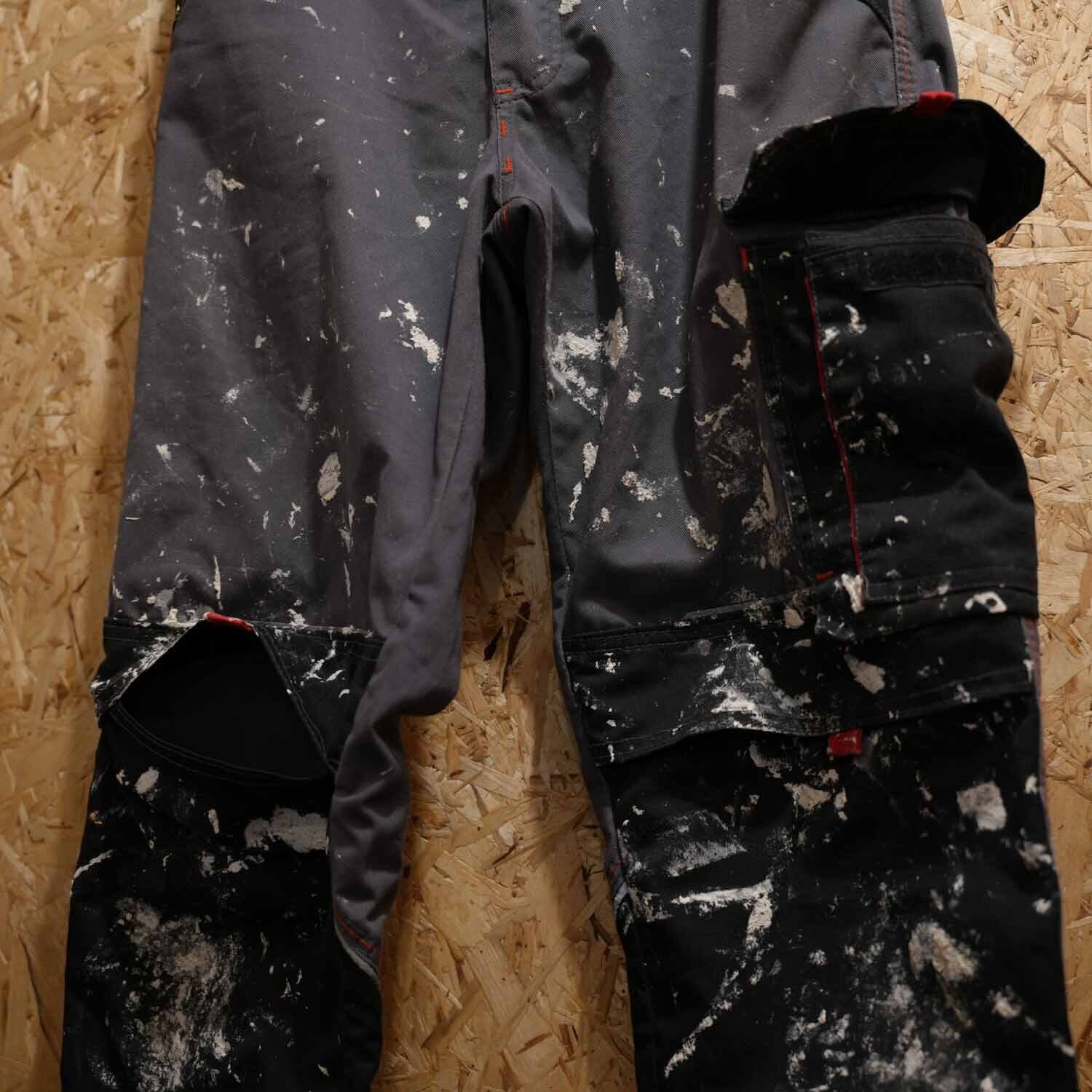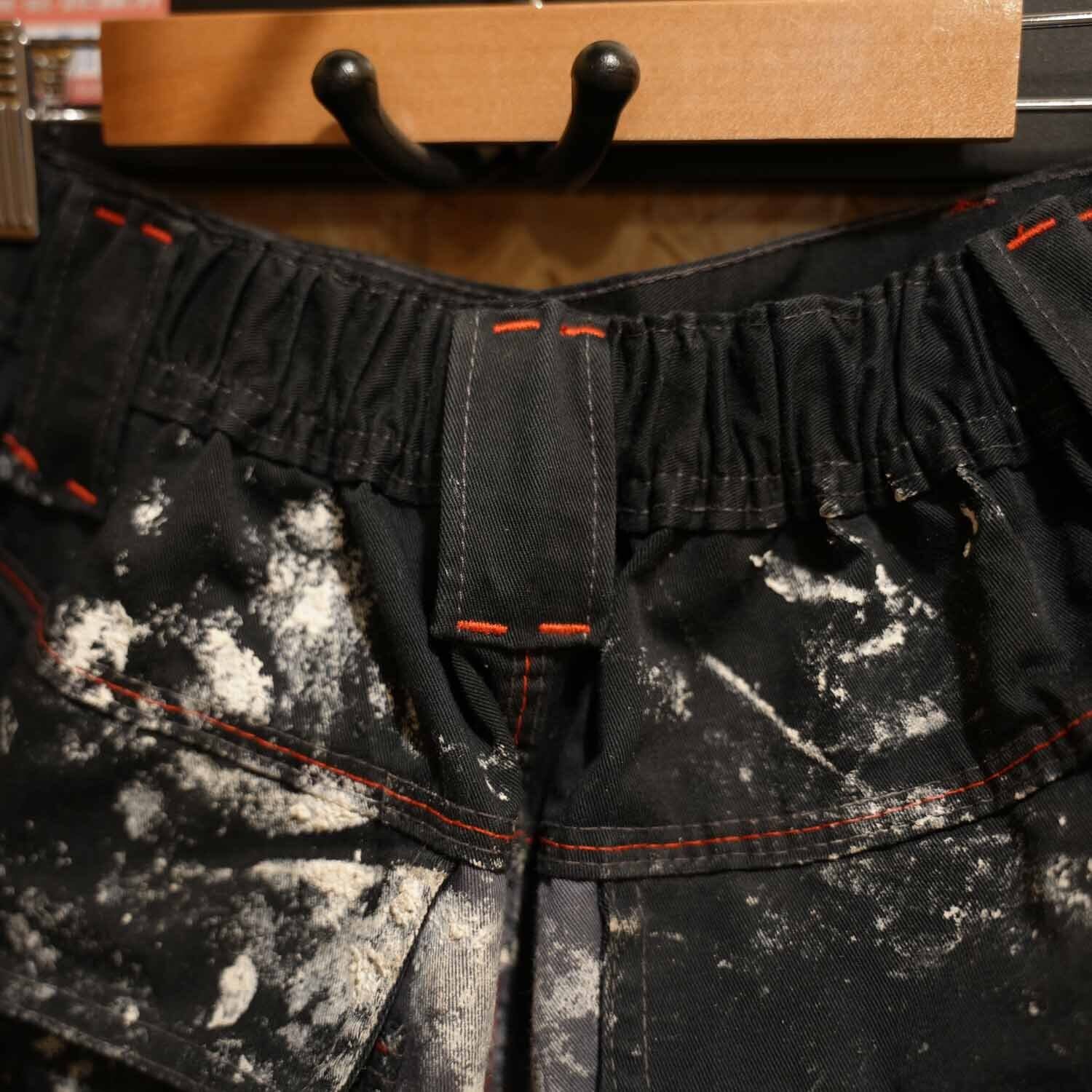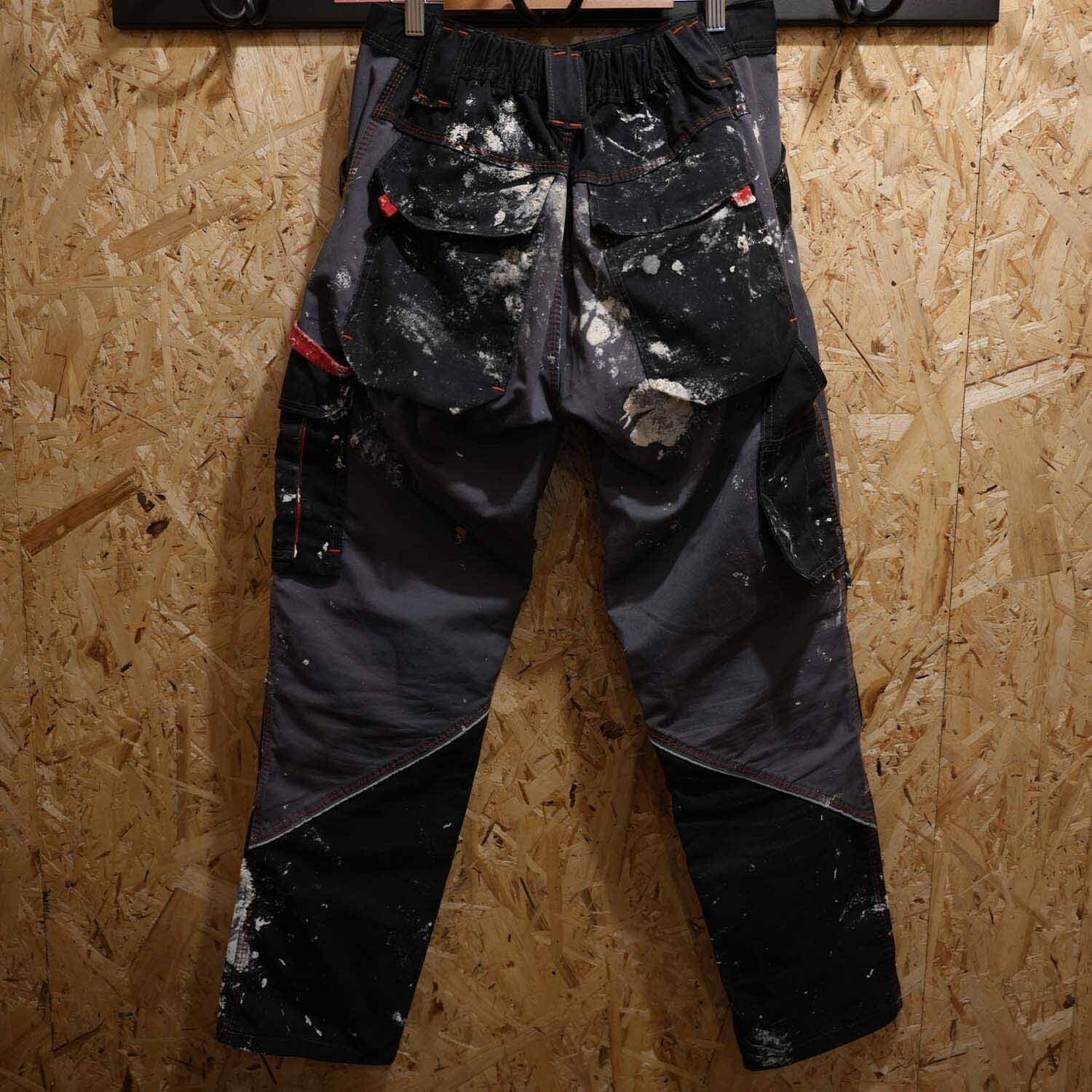90s-00s Euro Work Cotton Pants ユーロワーク コットン パンツ チャコールグレー リアルペンキ飛び ウエストゴム ボックスストレート 古着 パンツ 【furugi-1998】