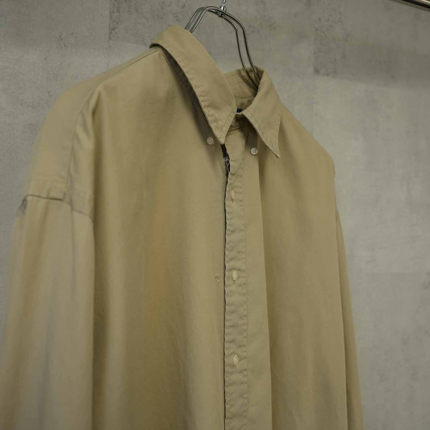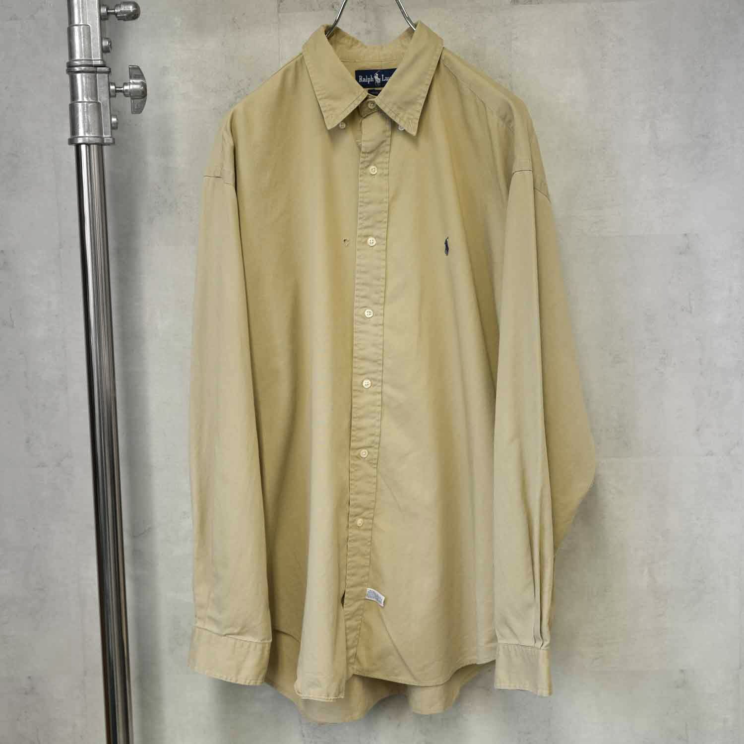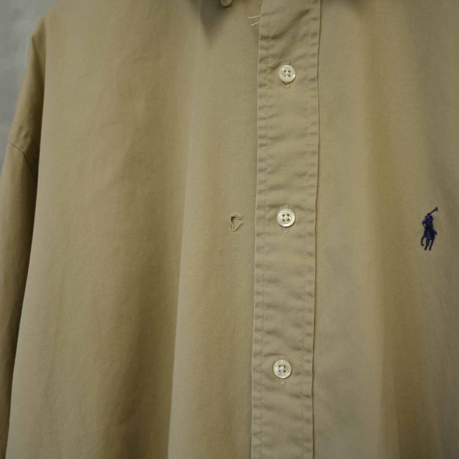 90s Ralph Lauren ラルフローレン 長袖シャツ ボタンダウン XLサイズ コットン ベージュ プレッピー 古着【furugi-2130】