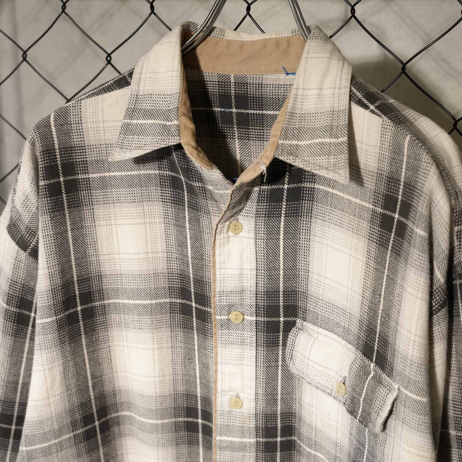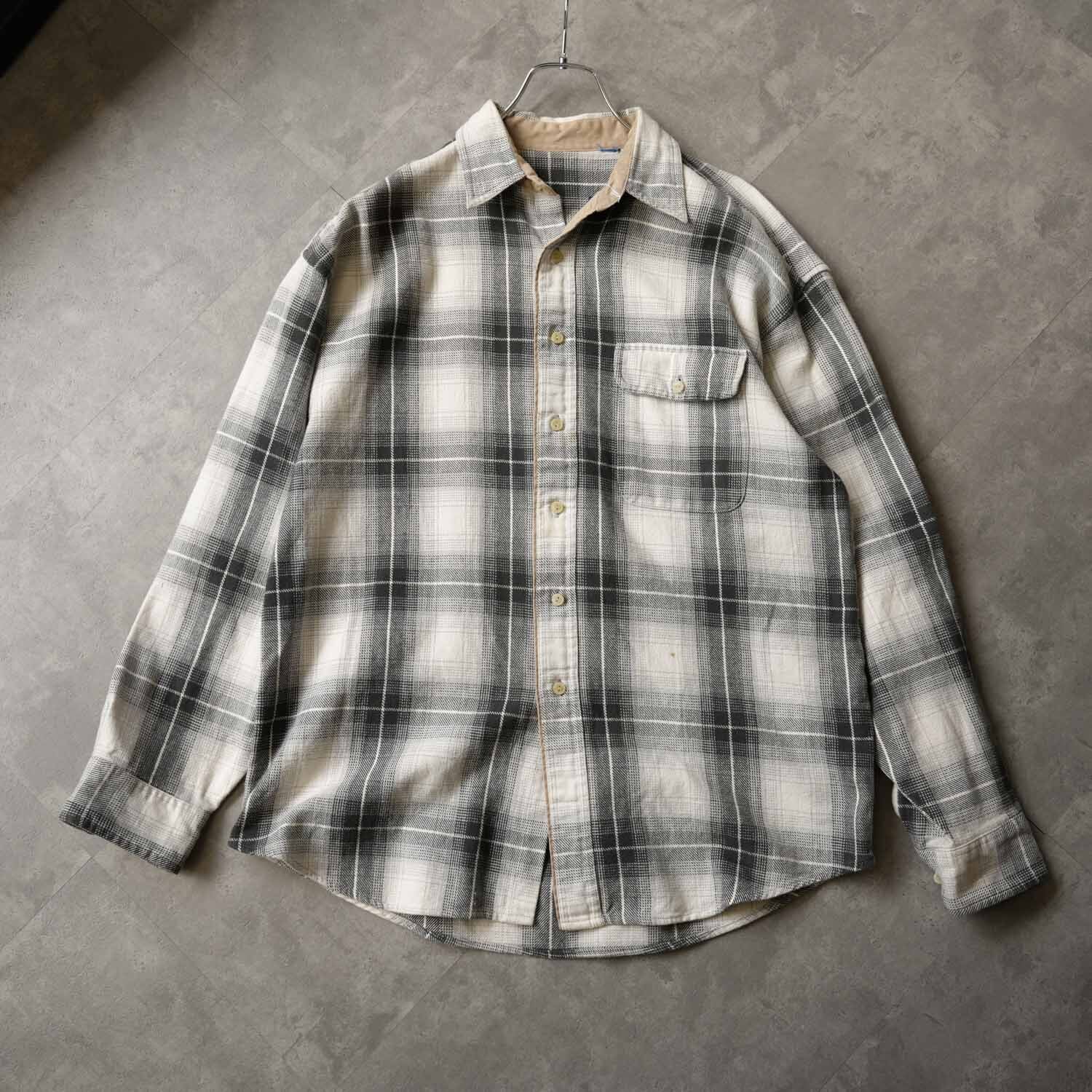 90s Unknown Ombre Check Flannel Shirt / 90年代 アンノウン オンブレチェック ネルシャツ Lサイズ程度 シャドーチェック コットン100 カートコバーン グランジ アメカジ 古着【furugi-2108】