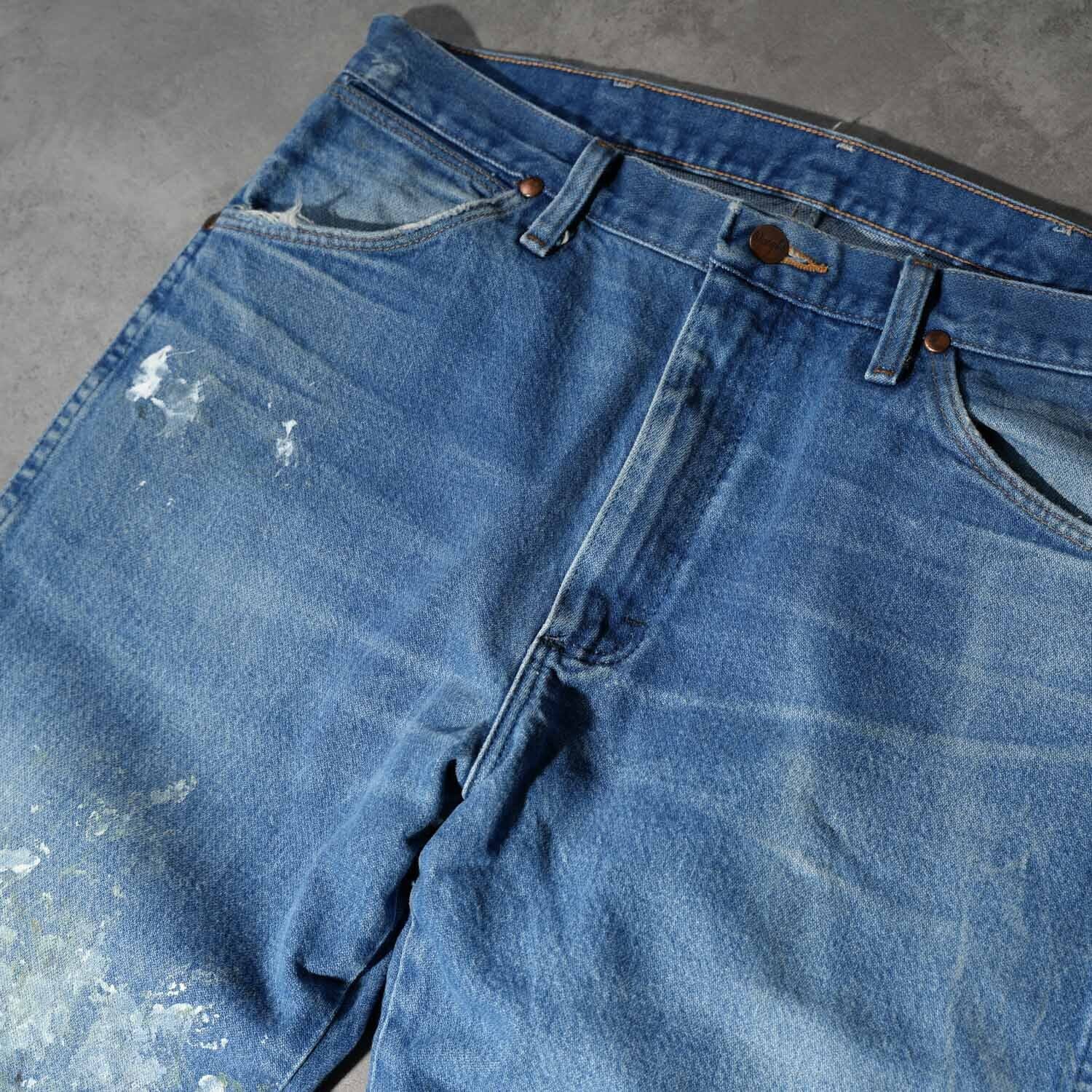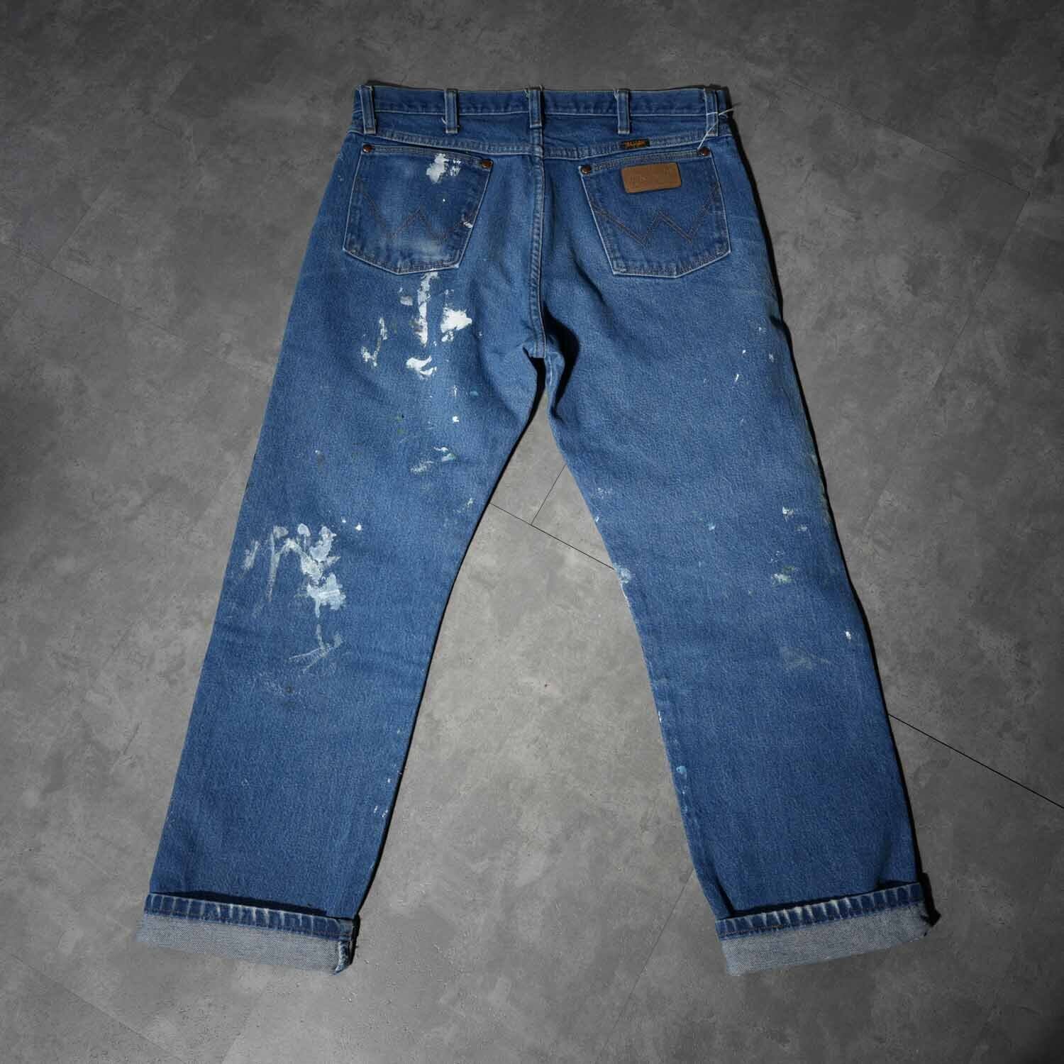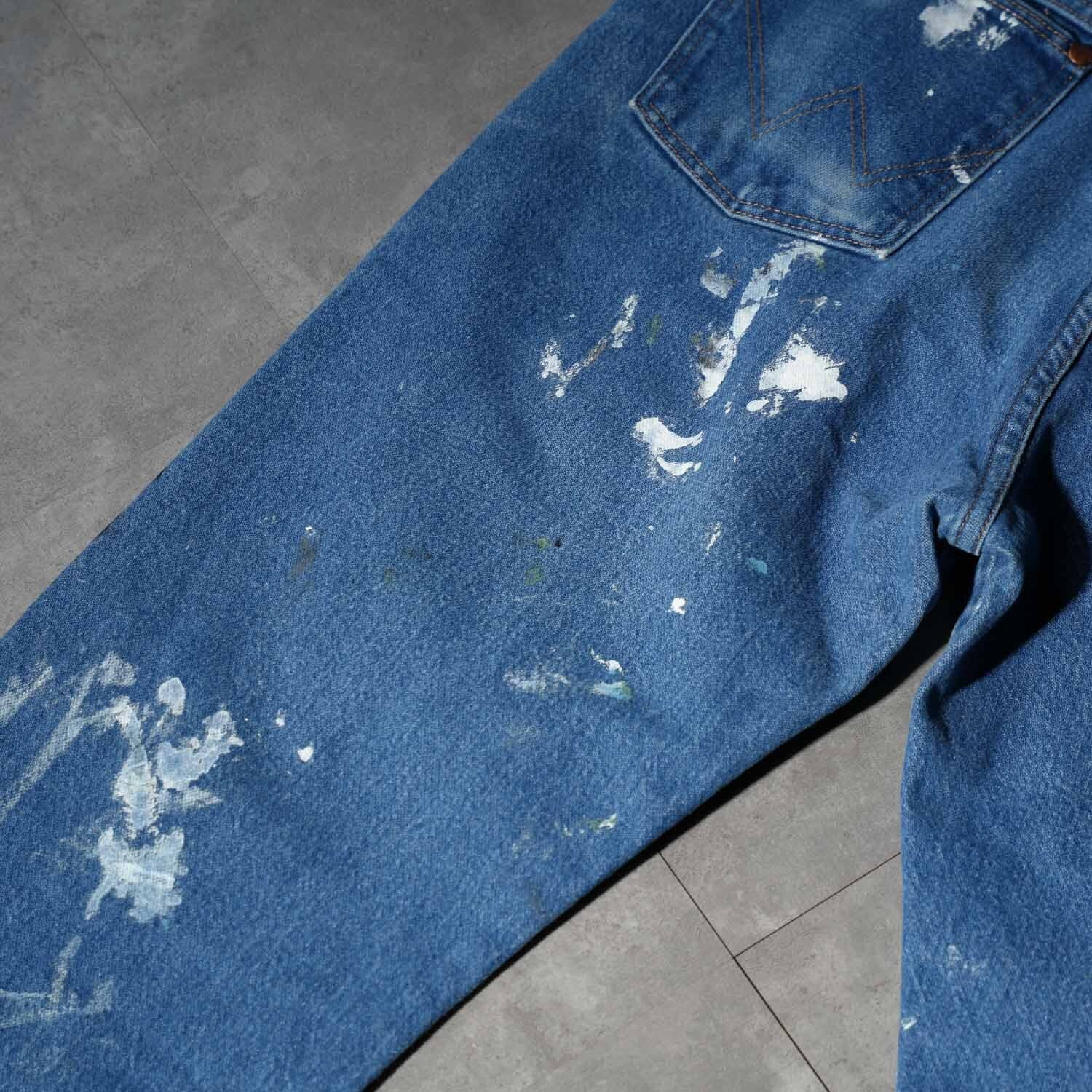 Wrangler "Paint Custom" ラングラー デニムパンツ ペイントカスタム ブロークンデニム ワーク モード ストリート ボロ ペンキ飛び アート クラッシュ 音楽 パンク グランジ 古着【furugi-1949】
