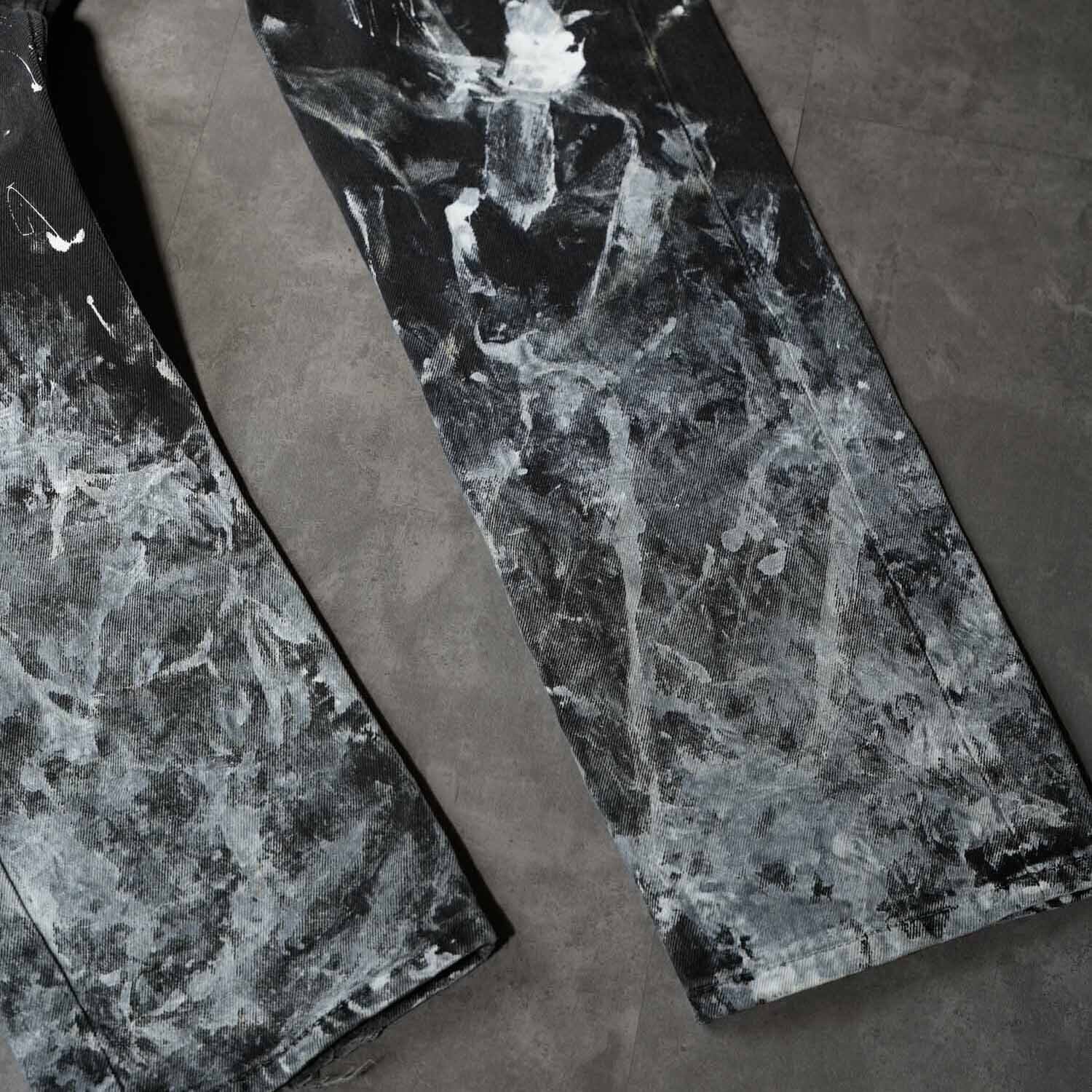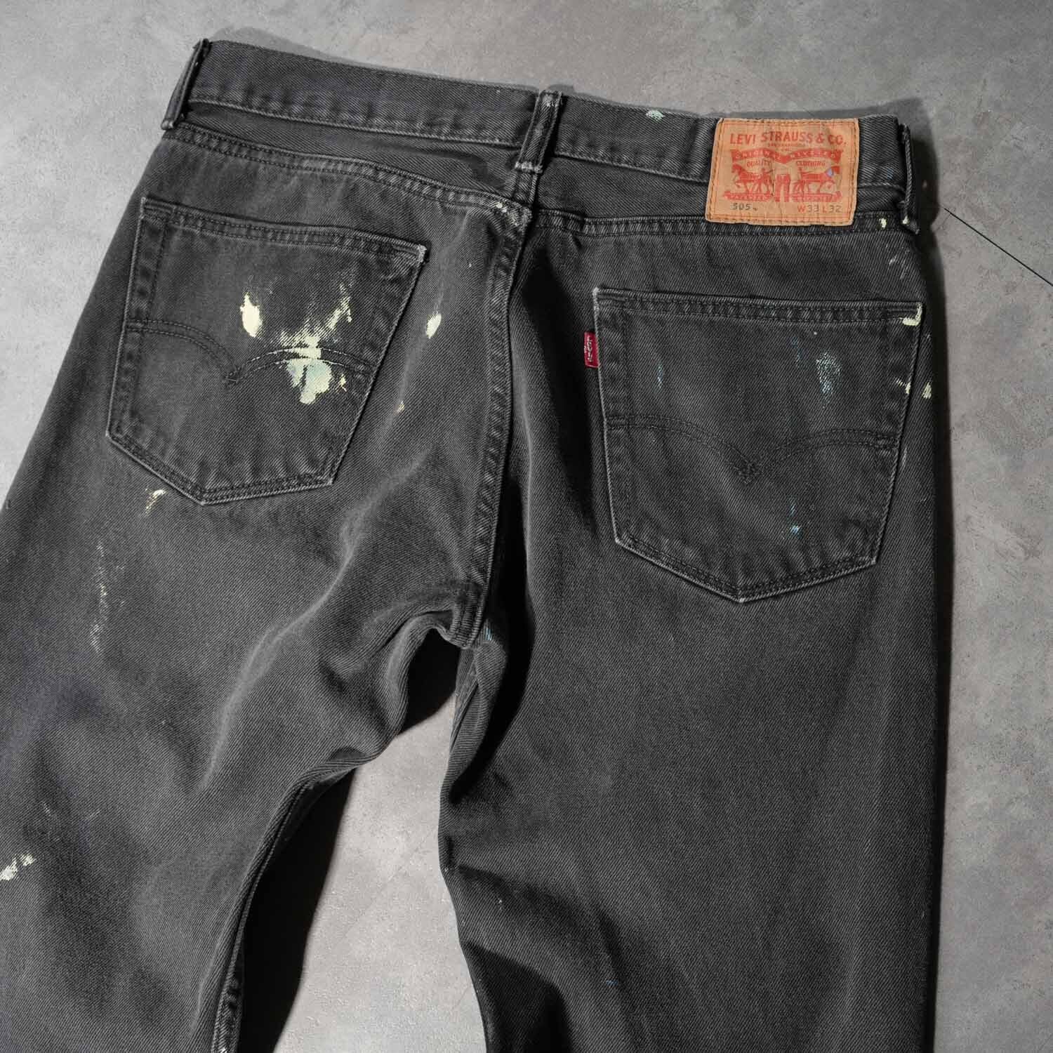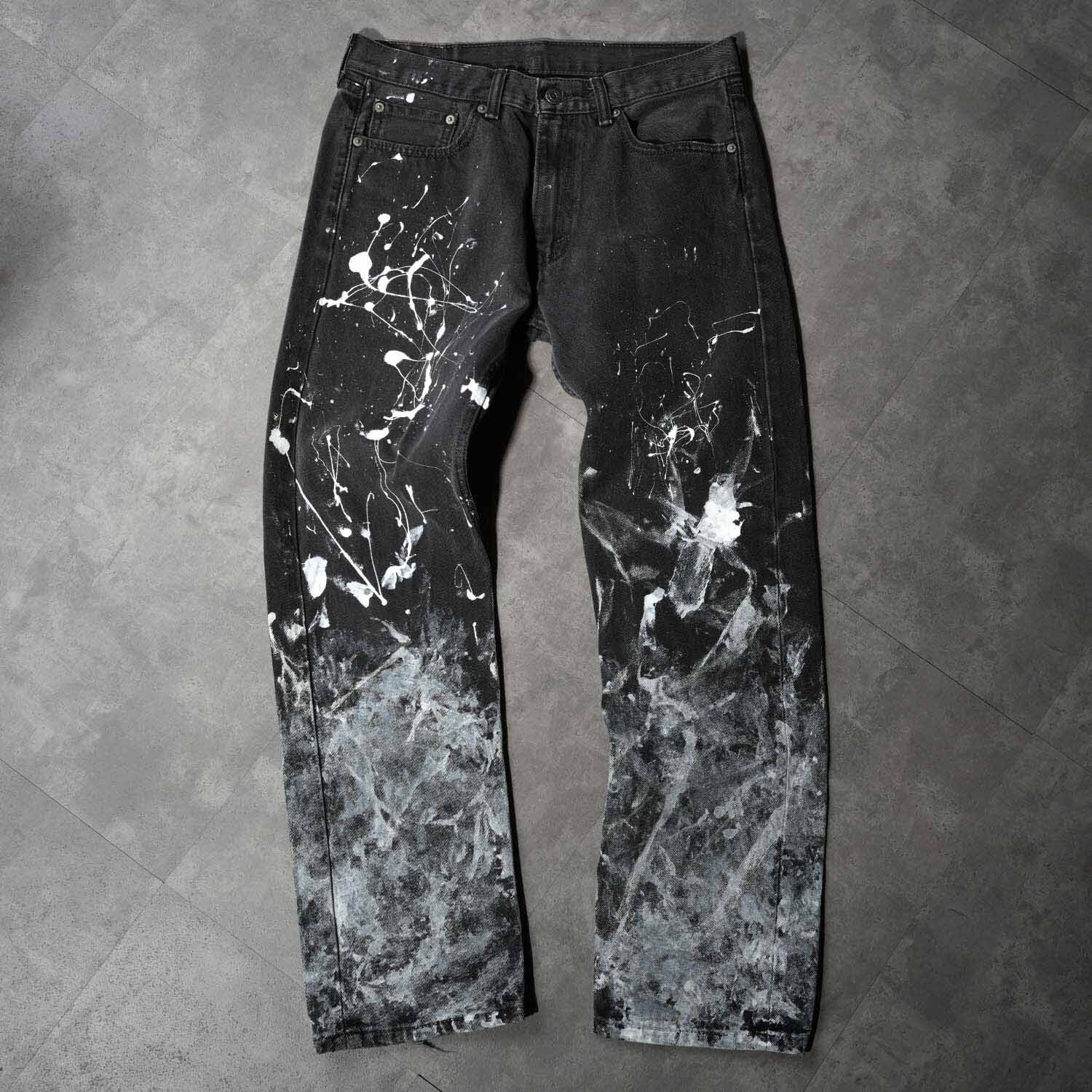 Levi's 505 W33×L32 Fade Black Denim Pants "Art Splatter Paint" リーバイス 505 ブラックデニム ペイントカスタム 墨黒 フェード ワーク モード アメカジ ストリート ボロ アート クラッシュ 音楽 パンク グランジ 古着【furugi-1998】