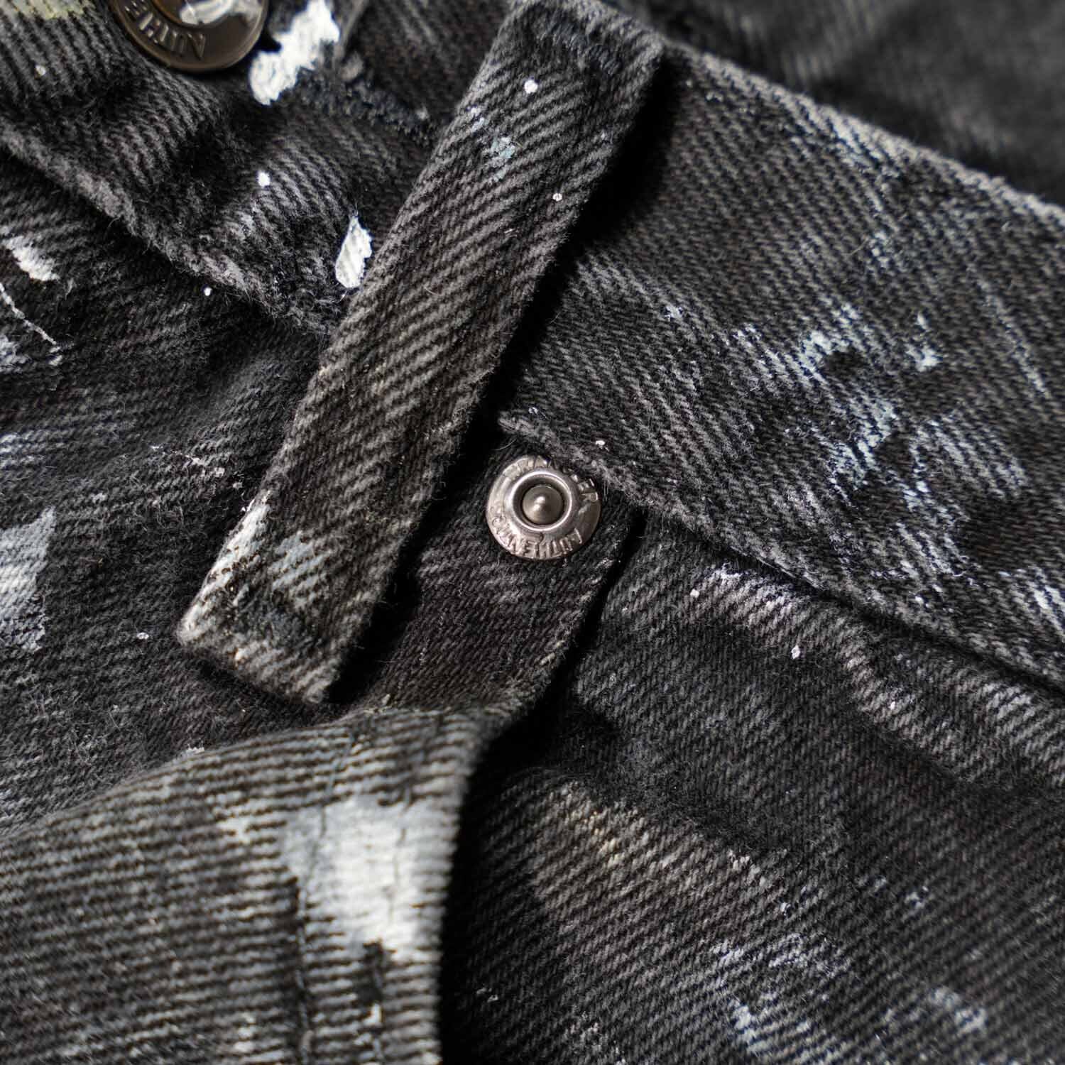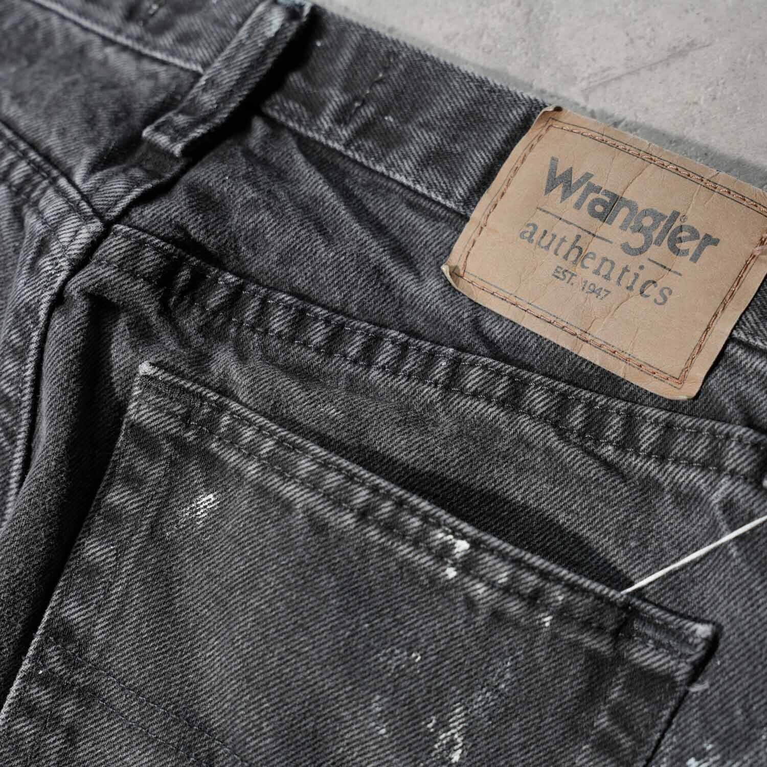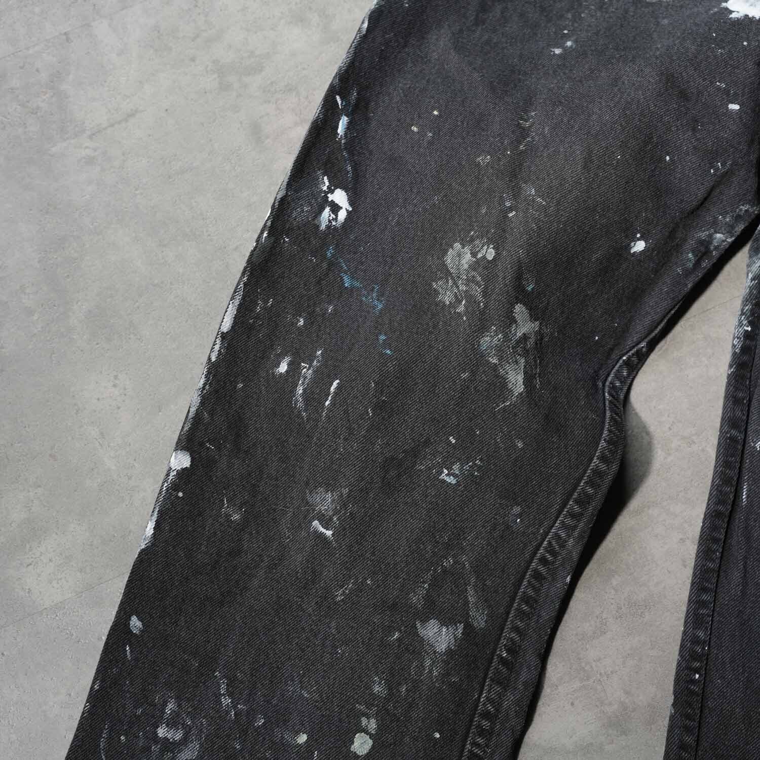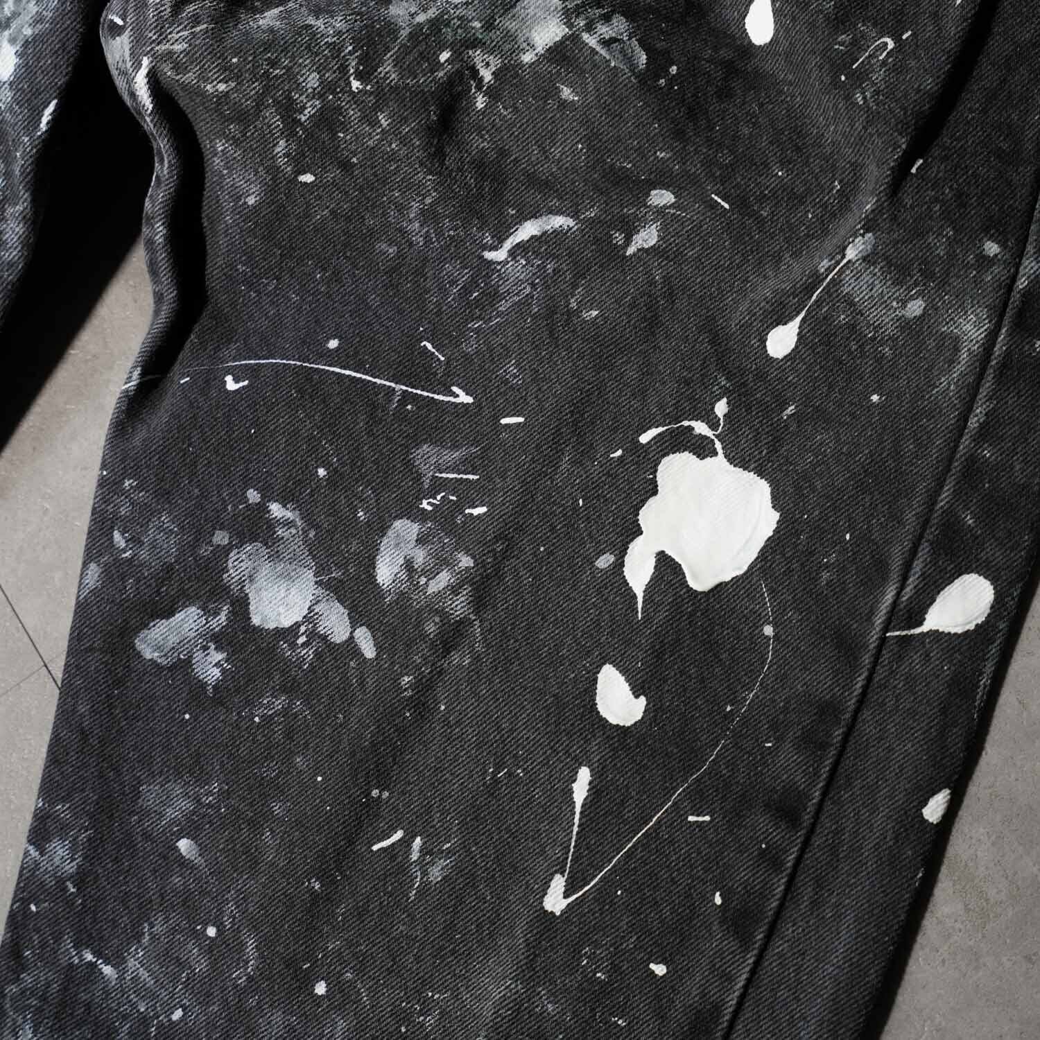 Wrangler w32×30 Black Denim Pants "Splatter Paint Custom" ラングラー ブラックデニム デニムパンツ ペイントカスタム 墨黒 14oz ヘビーウェイト ワーク ボロ アート クラッシュ 音楽 パンク グランジ 古着【furugi-2089】