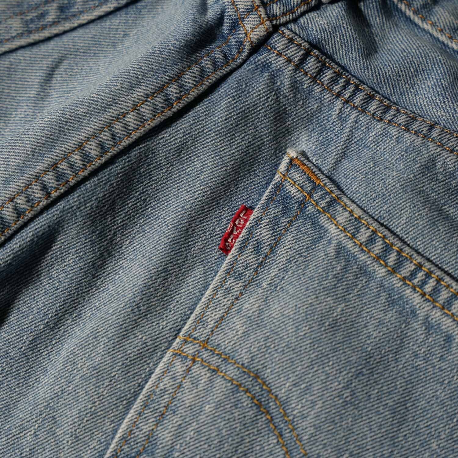 501よりも股上がやや深く、裾にかけて真っ直ぐに落ちるストレートシルエットは、現代のストリートシーンにおいても非常に使い勝手の良い形です。
