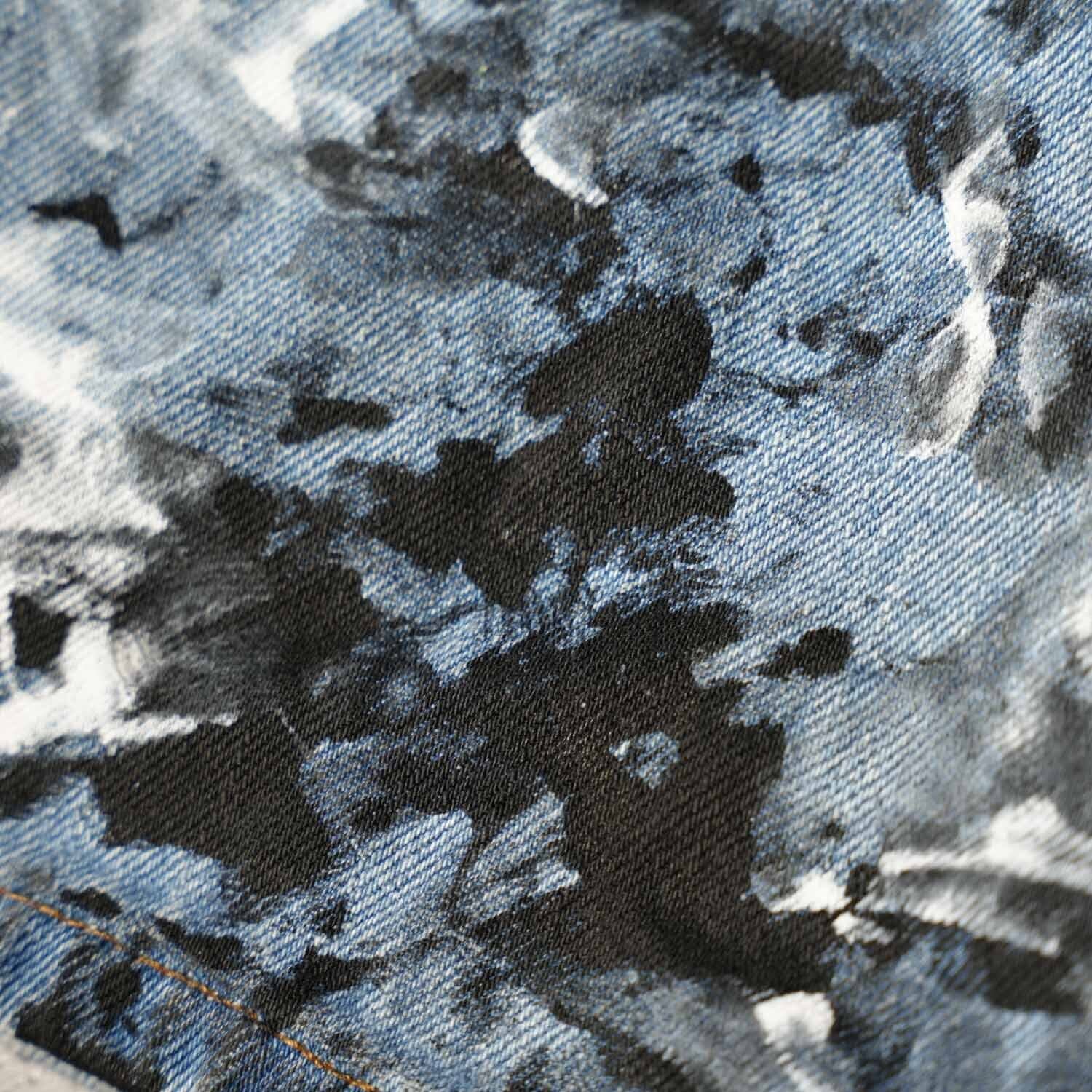 ベースは、安定した人気を誇る Levi's 505。色味を抑えたモノトーンのペイントが、デニム本来のフェード感と重なり、奥行きのある表情を作っています。