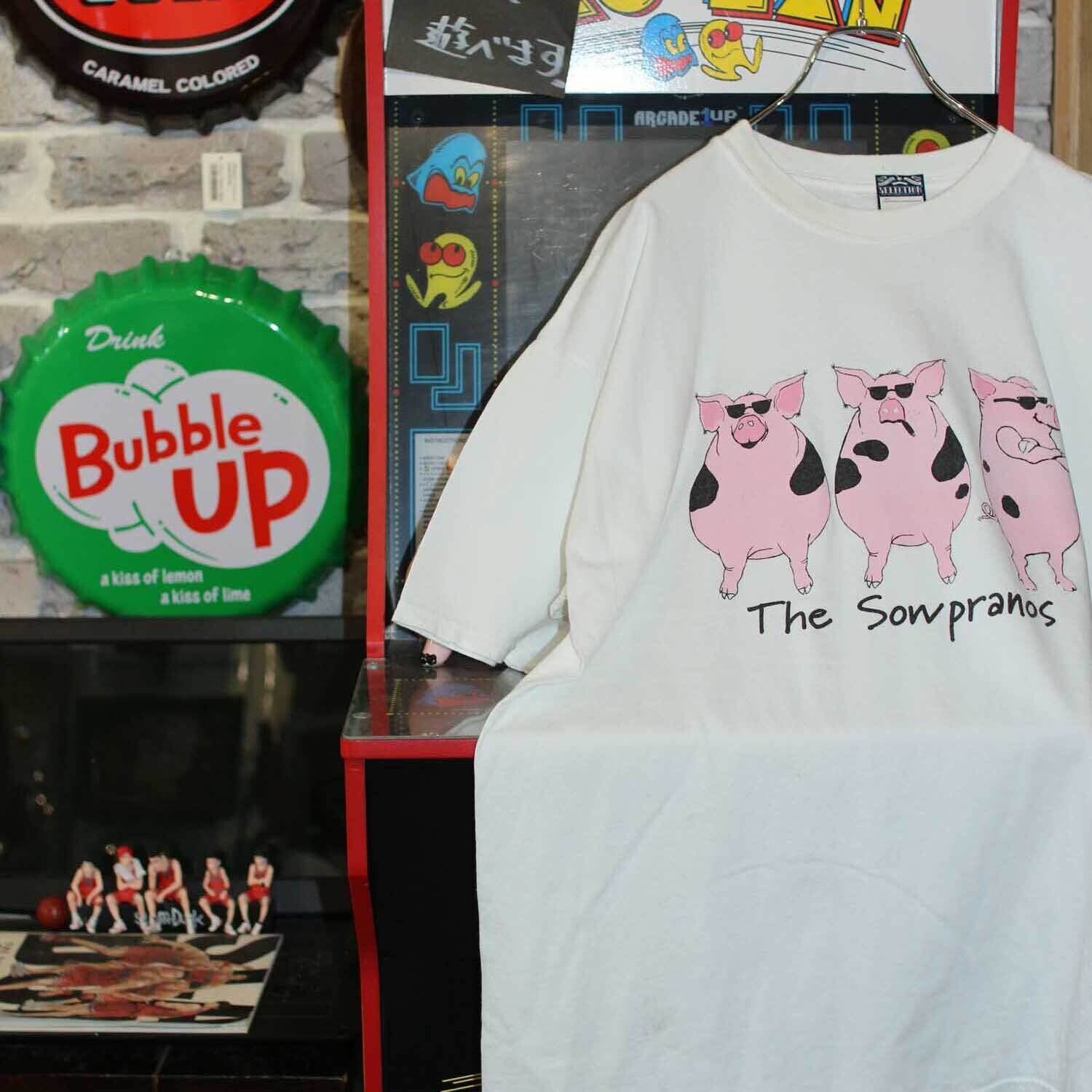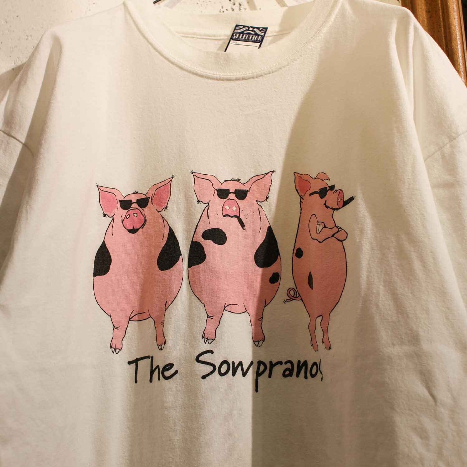 The Sowpranos アメリカ マフィア ヴィンテージ TVドラマ Tシャツ 90's ホワイト アニマル 豚 1999年 【furugi-1134】