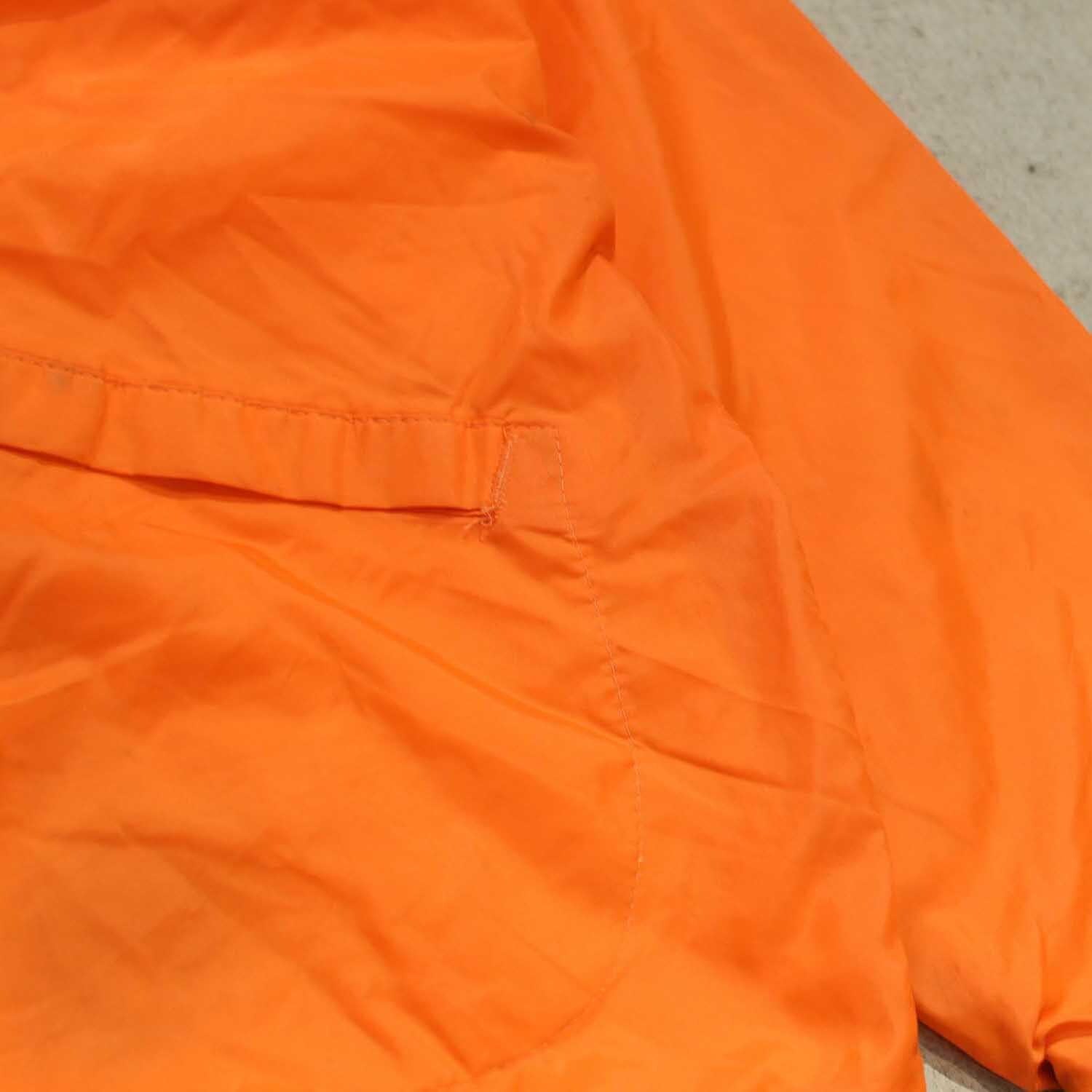 ナイロンシェルで軽量。気軽に羽織れますので、秋~春先のライトアウターとして非常に優秀です。特に発色の良い救難オレンジは古着市場でも人気が高く、デザイン性と実用性を兼ね備えたカラーリングです。