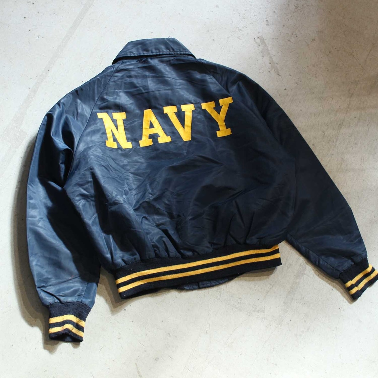 "US NAVY" アメリカ製 スタジャン mvp ナイロン ネイビー made in u.s.a. 【furugi-0943】