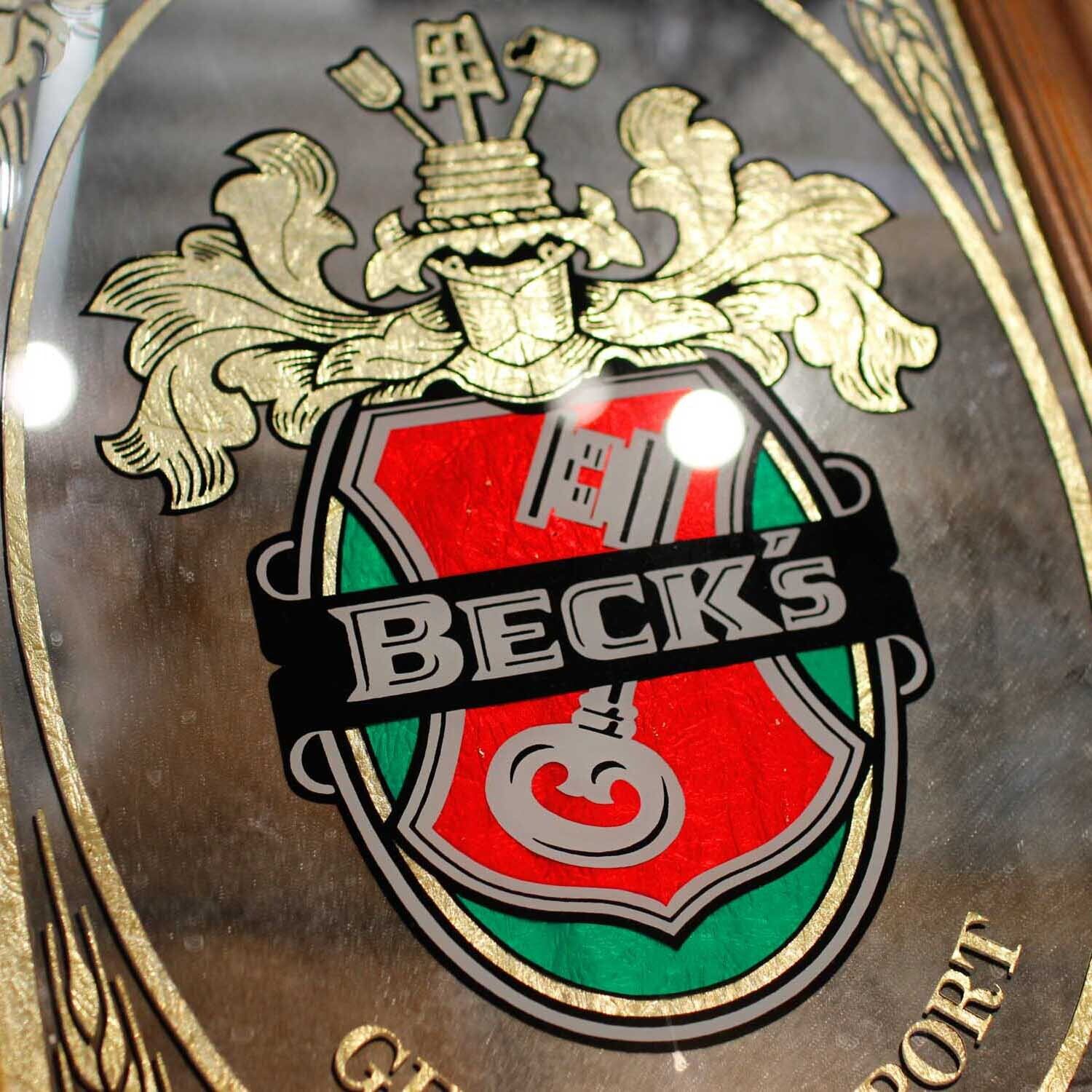 BECK'S beer Vintage Pub Mirror(Bar Mirror) ベックス ドイツ ビール パブミラー バーミラー バー アメリカン雑貨 ヴィンテージ アンティーク インテリア ディスプレイ 雑貨 店舗 企業 什器 酒【vi-2226】